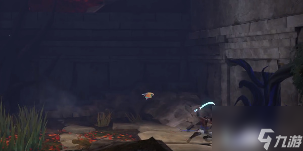 第二步:来到对应的位置后我们向右移动,来到一处被树根遮住的洞口前,使用武器将树根清理干净。