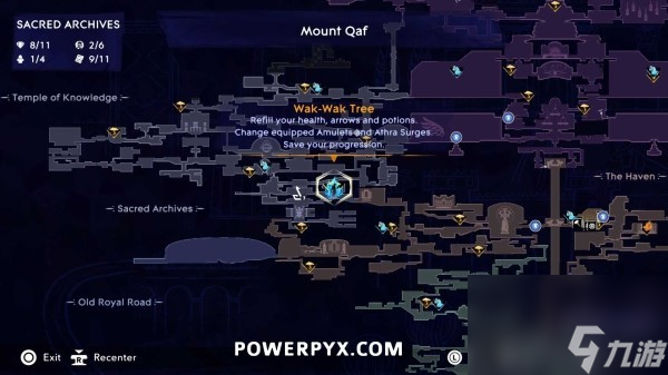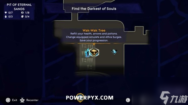瓦格瓦格头位于8棵特定的瓦格瓦格树上,瓦格树是一种可以互动的金色大树,靠近后按L1/LB互动可以恢复血量并切换装备。所有的瓦格瓦格头都不用担心漏掉,通关主线剧情后依然可以自由探索并返回收集。注意本作会在打最终BOSS前出现前方无法返回的提示,但只是暂时无法返回,之后依然有机会能回到开放世界。