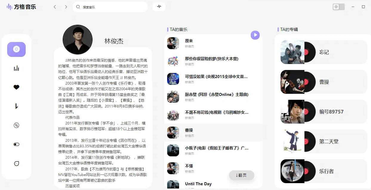 此外,各种详细的歌曲信息也增加了方格音乐的使用体验,比如歌手专栏、榜单都会有详细的介绍,点开周杰伦的专栏,就会有他的详细介绍,甚至最近开的演唱会唱了哪些歌都会有,感兴趣的用户赶紧来本站下载体验吧。