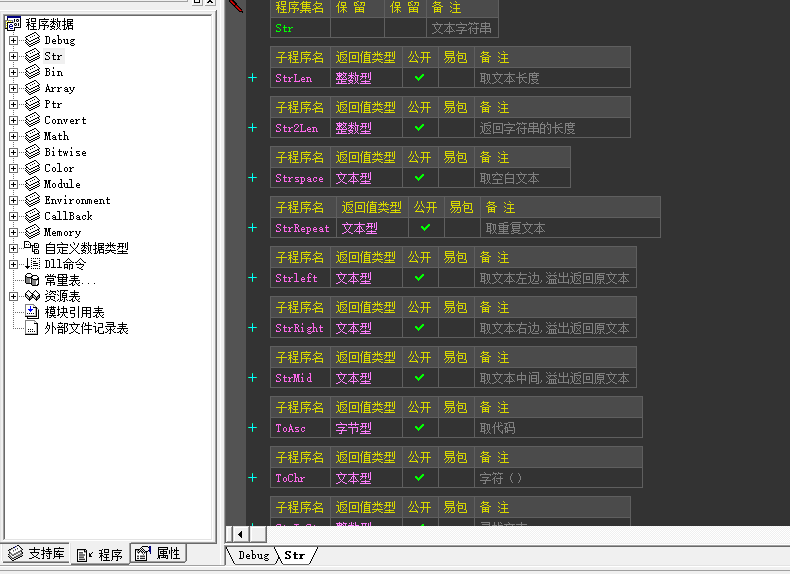 涉及,文本,字节集,内存,数学运算,转换,数组,颜色,环境存取,指针等