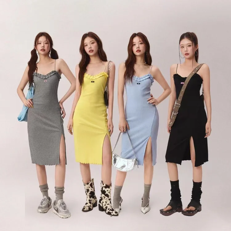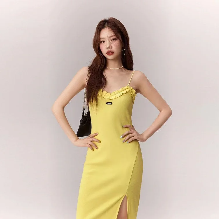 CHUU木耳边吊带连衣裙 基础辣妹性感开叉背