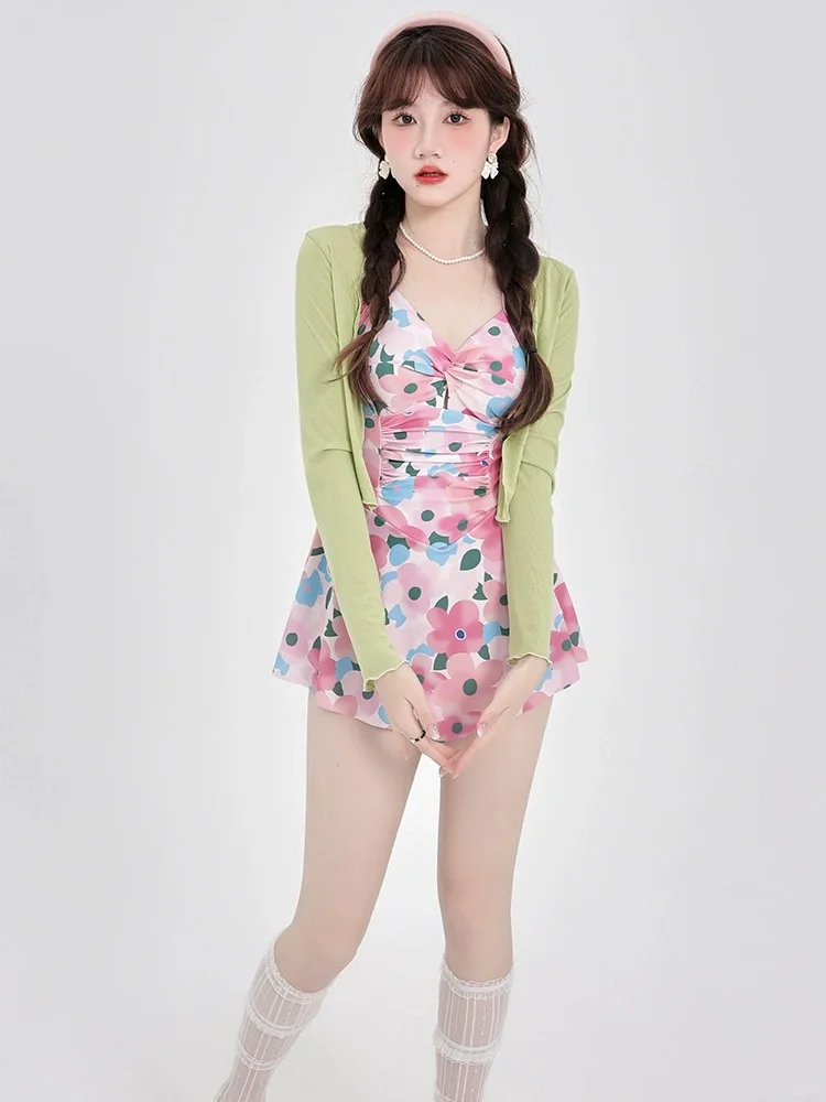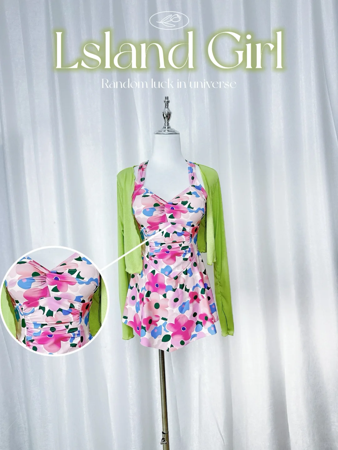 🌸两件套设计 连体裙子👗+绿色罩衫防晒又遮肉