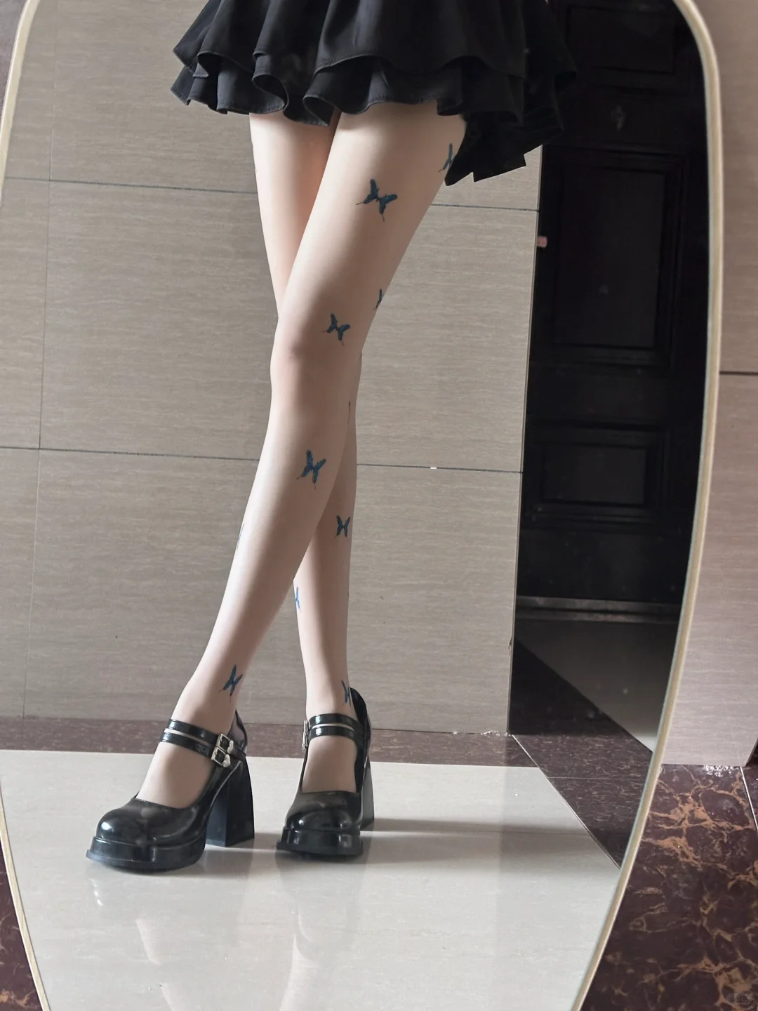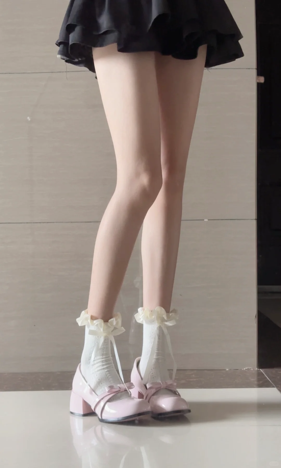 花边蕾丝袜 蝴蝶结点缀很可爱 花边也好看 搭配玛丽珍绝了