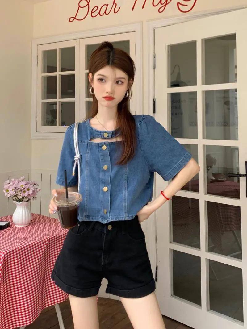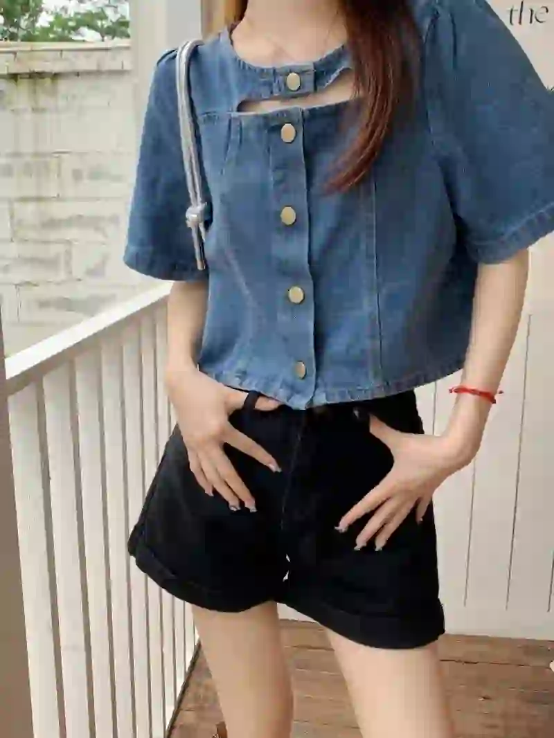 #牛仔衬衫 #显瘦穿搭 #小个子穿搭 #潮流时尚 #上衣 #夏季穿搭 #穿搭 #小心机上衣 #短款上衣 #小众设计 #