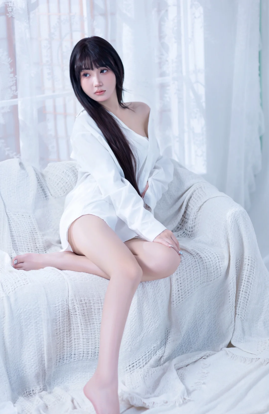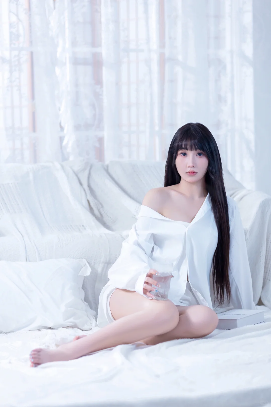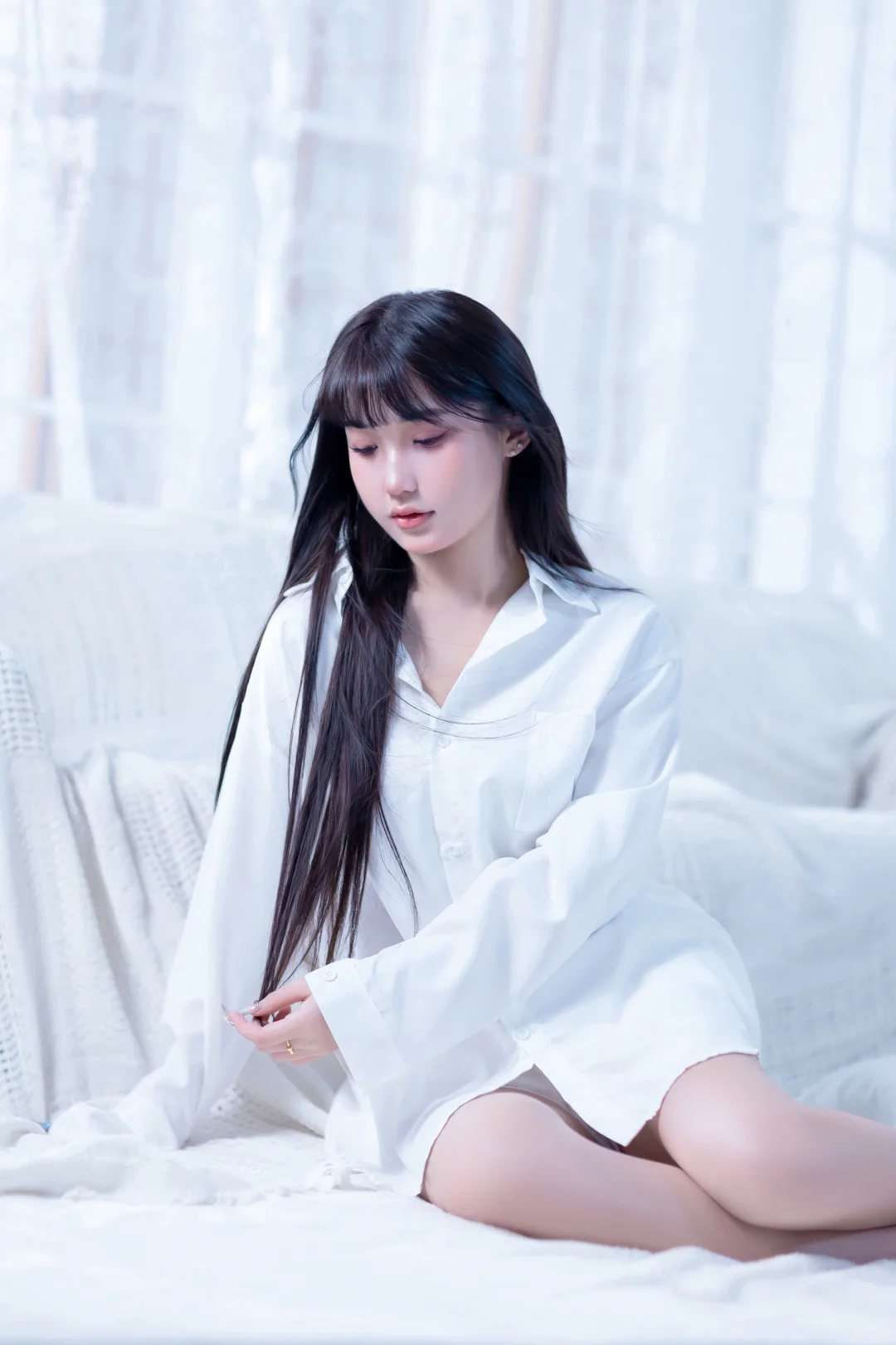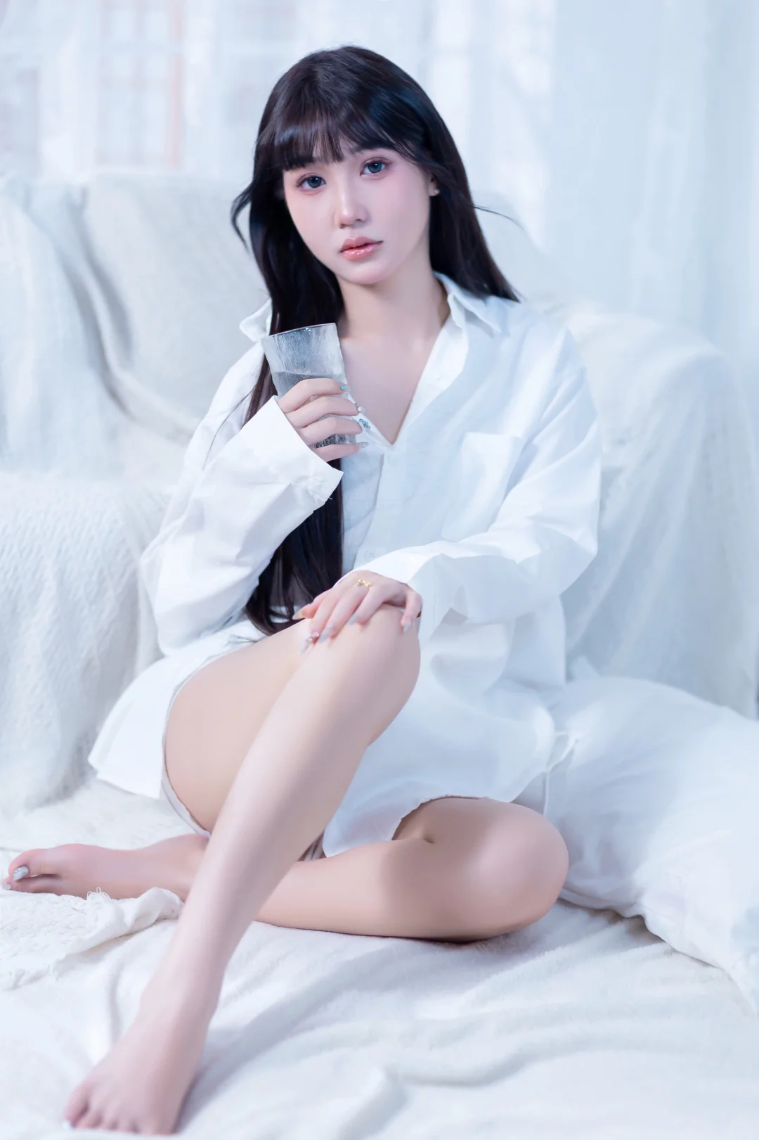 居家感纯欲少女写真🥛你的心动女友已上线男友风纯欲感白衬衫~