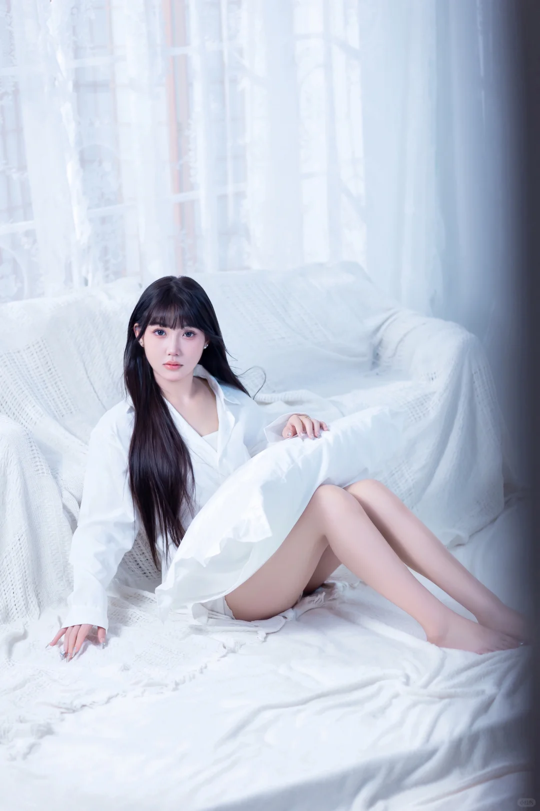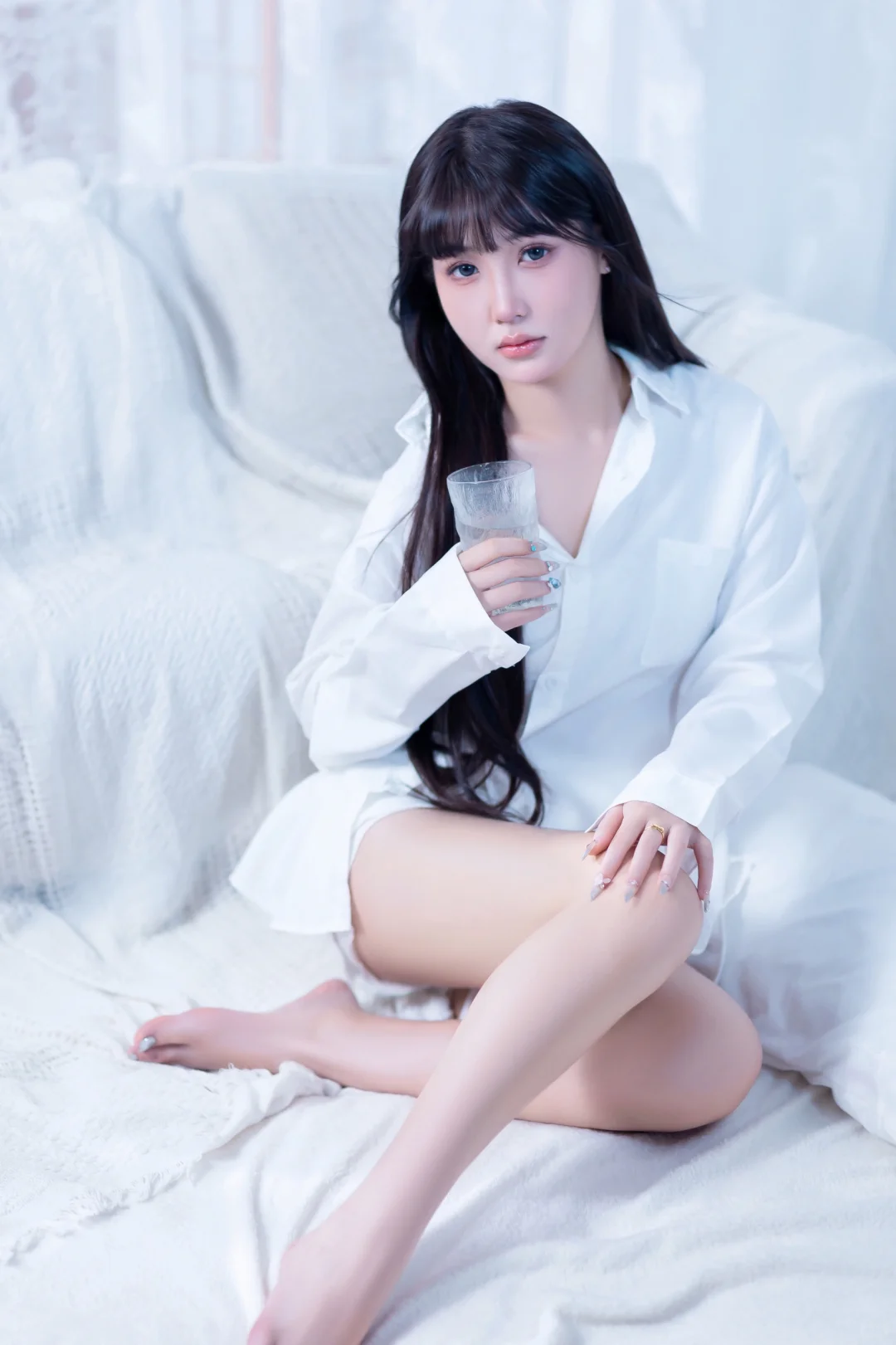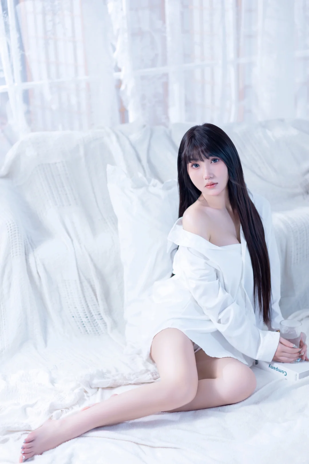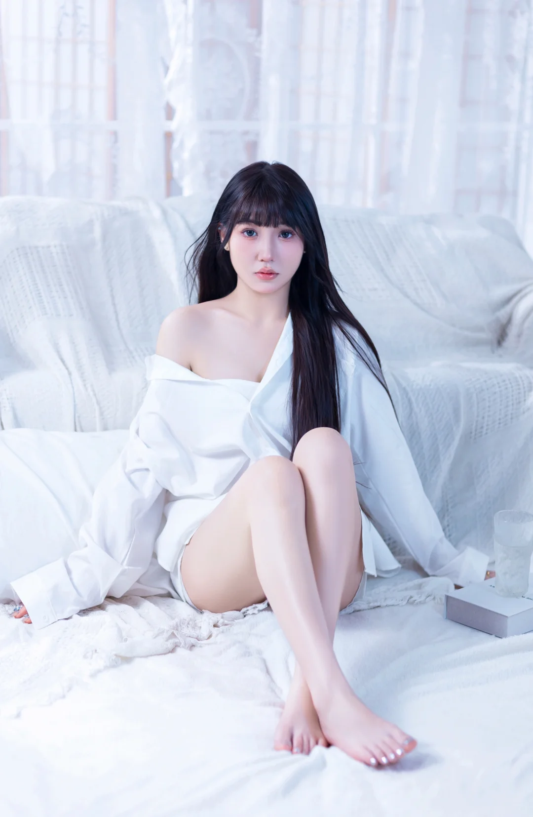 居家感纯欲少女写真🥛你的心动女友已上线男友风纯欲感白衬衫~