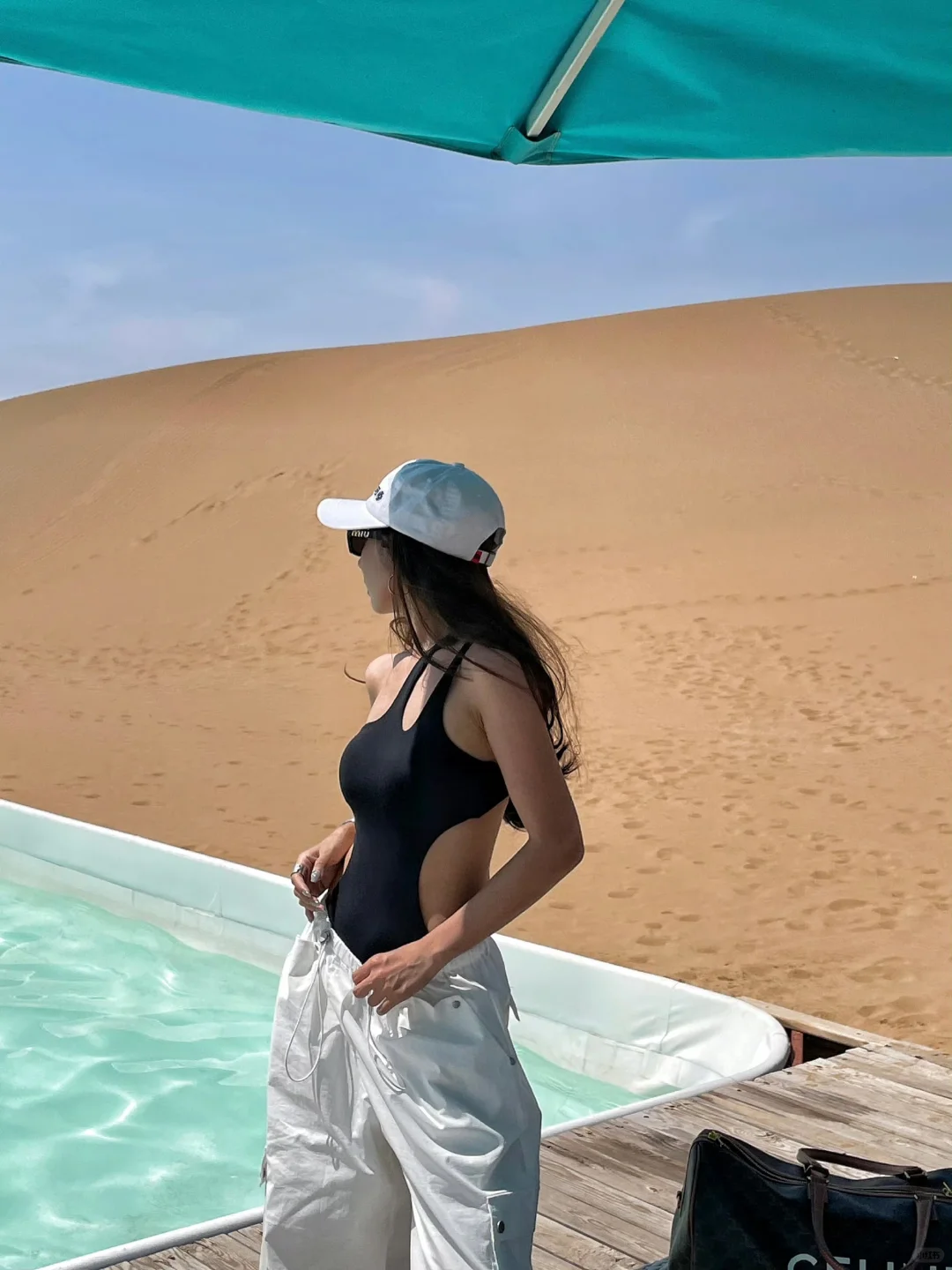 一眼就看上了这款,黑色单款吊带,泳衣款式时尚新颖,上身质感也好,面料柔软,穿着很舒服,给人看一眼的感觉又显瘦,显腿长嘎嘎好呢,又爱辽,推荐推荐,这样太纯欲了,姐妹赶紧入手益益