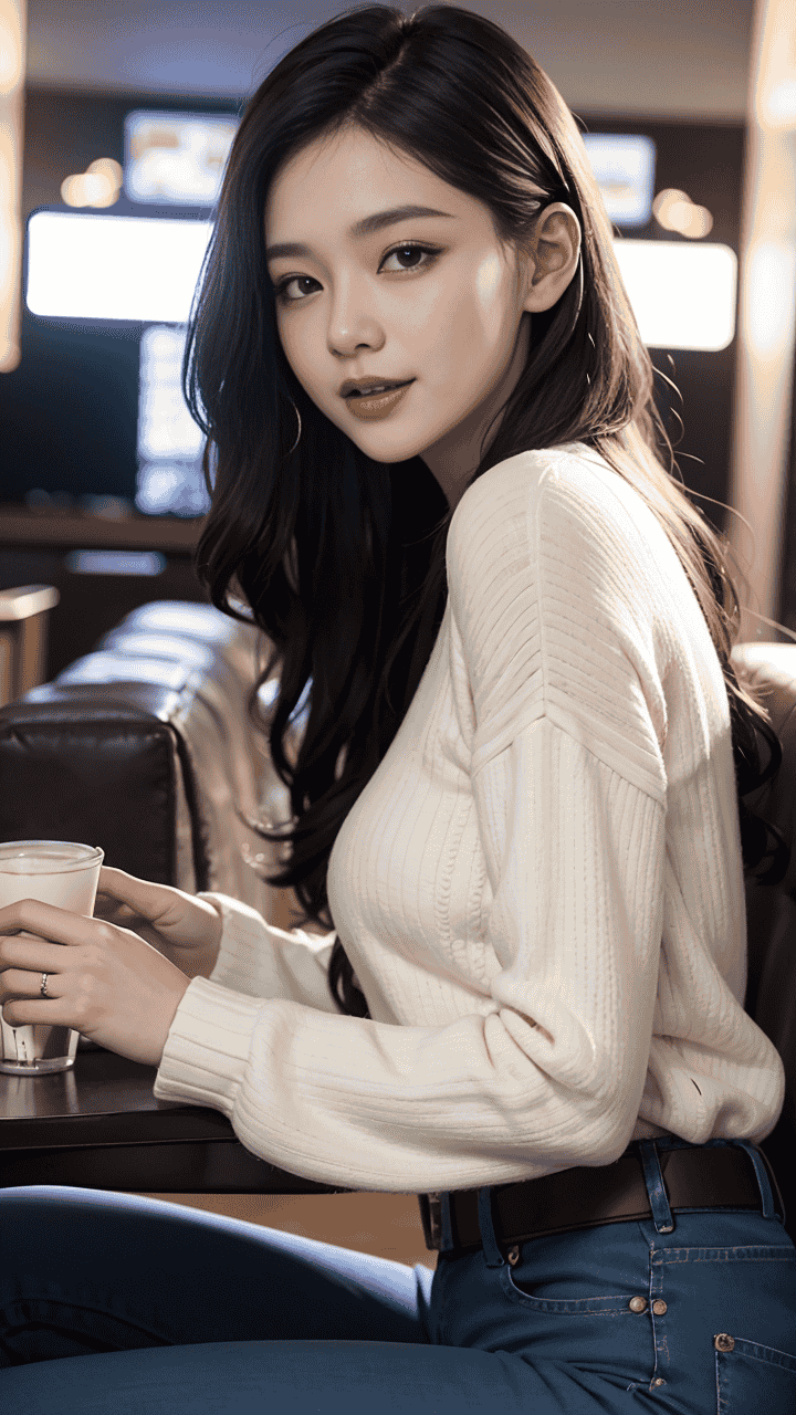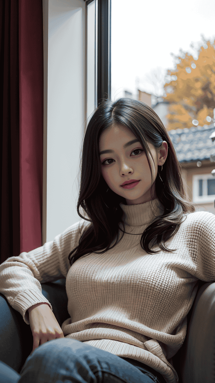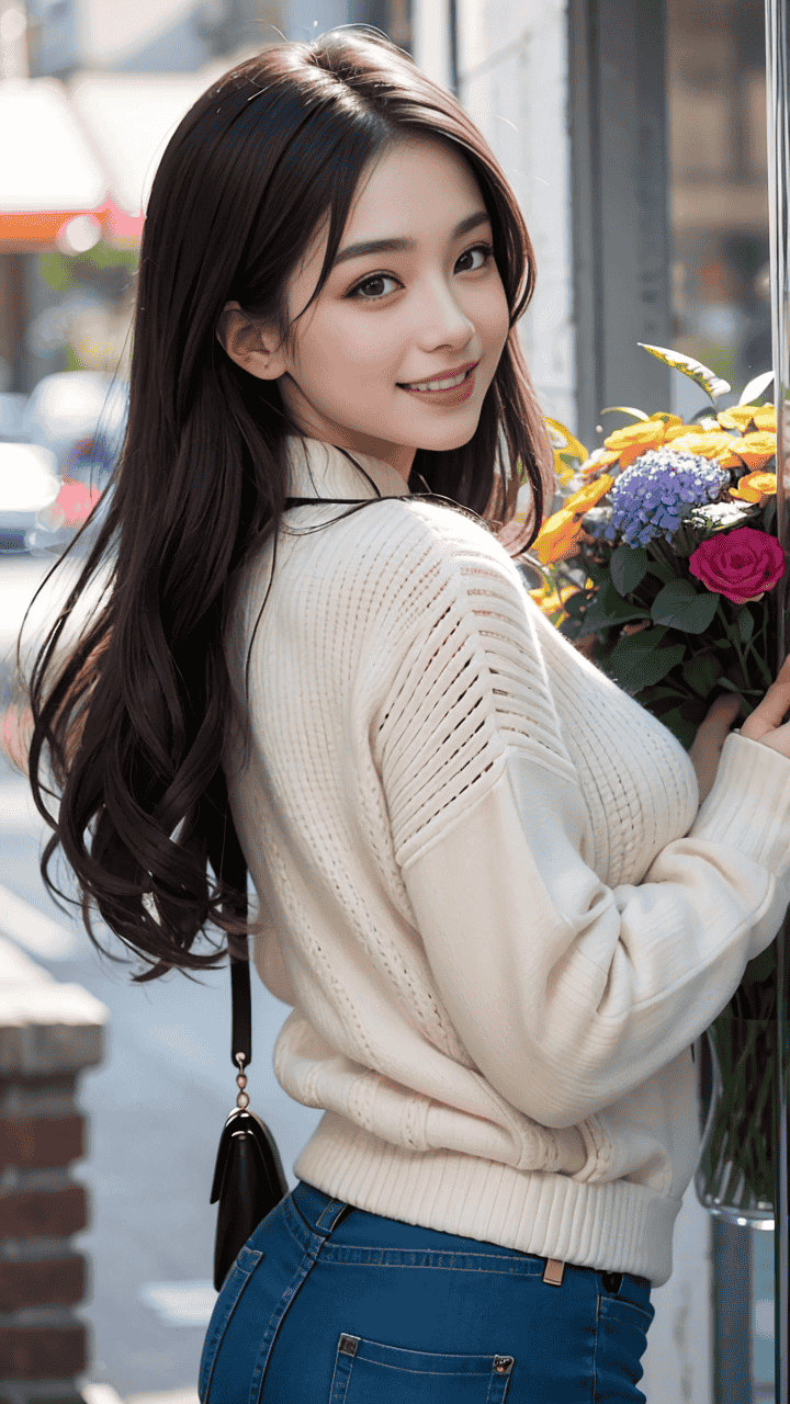 身穿《针织上衣+紧身牛仔裤》的清纯美女气质十足勾勒出迷人的身姿高清写真图片赏析