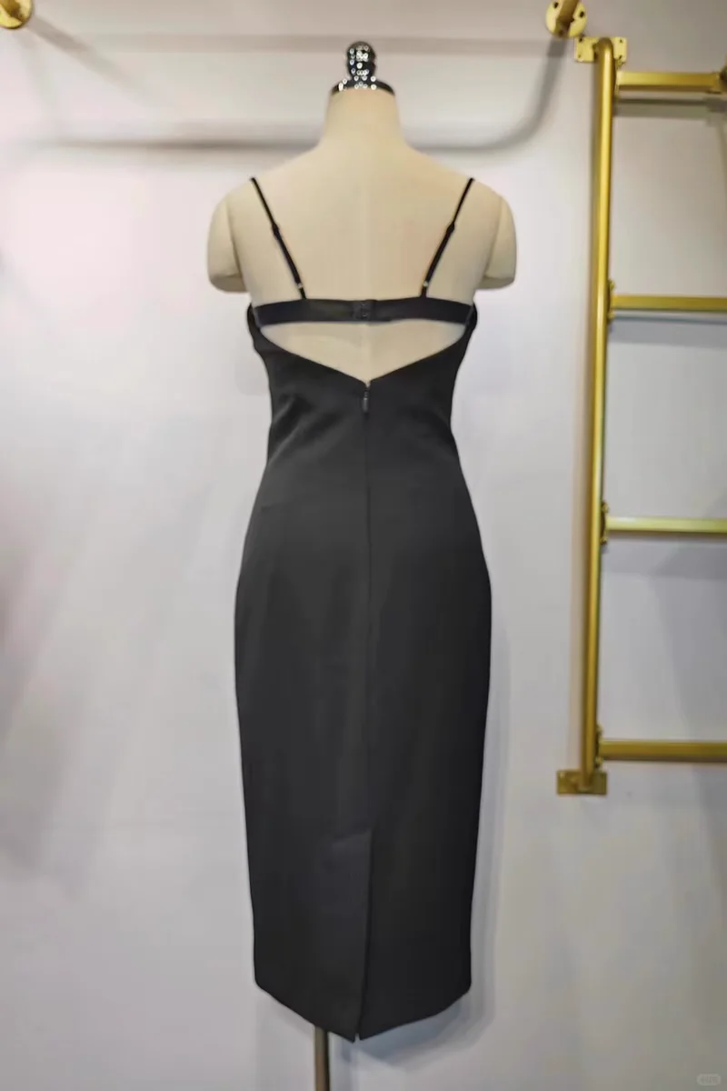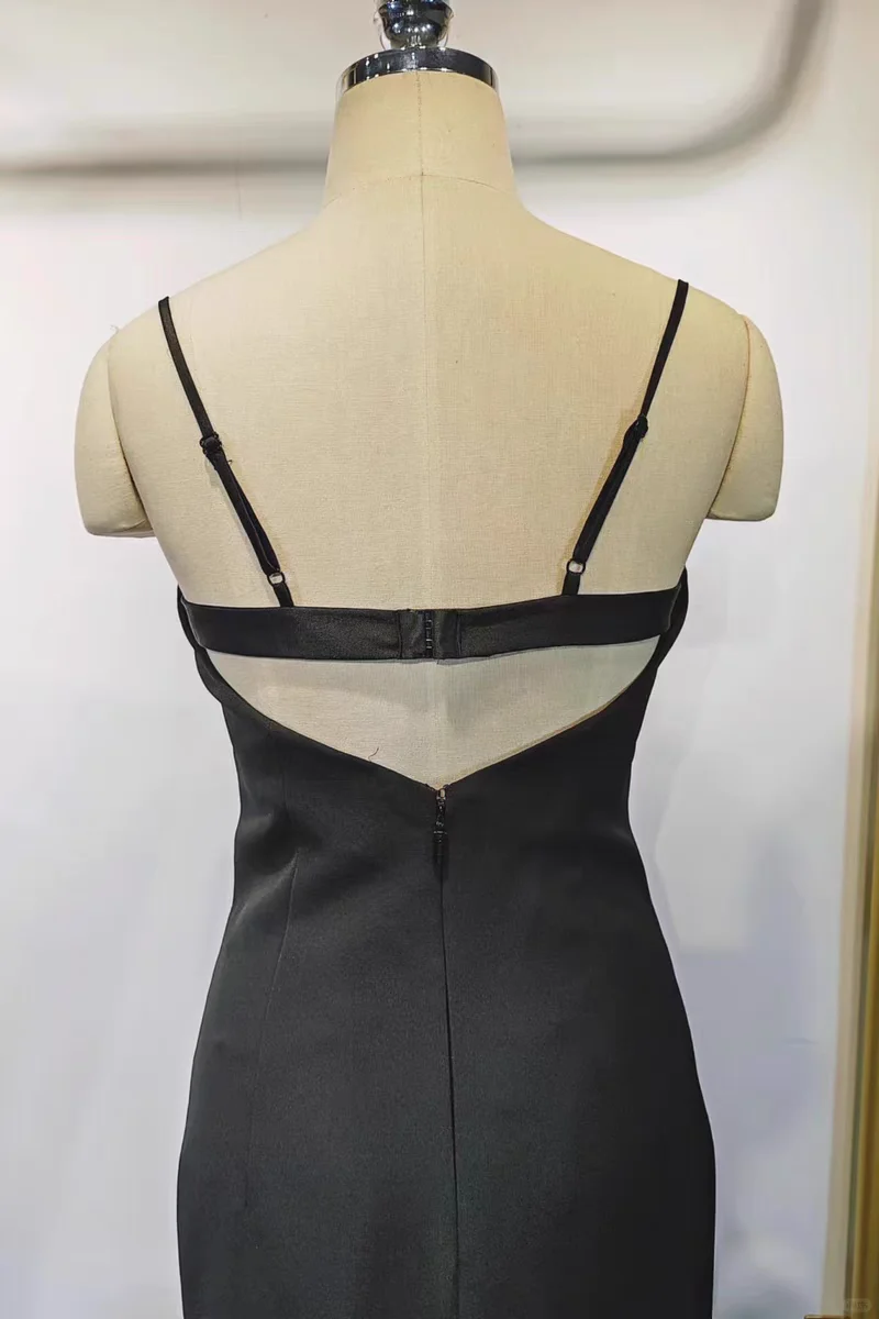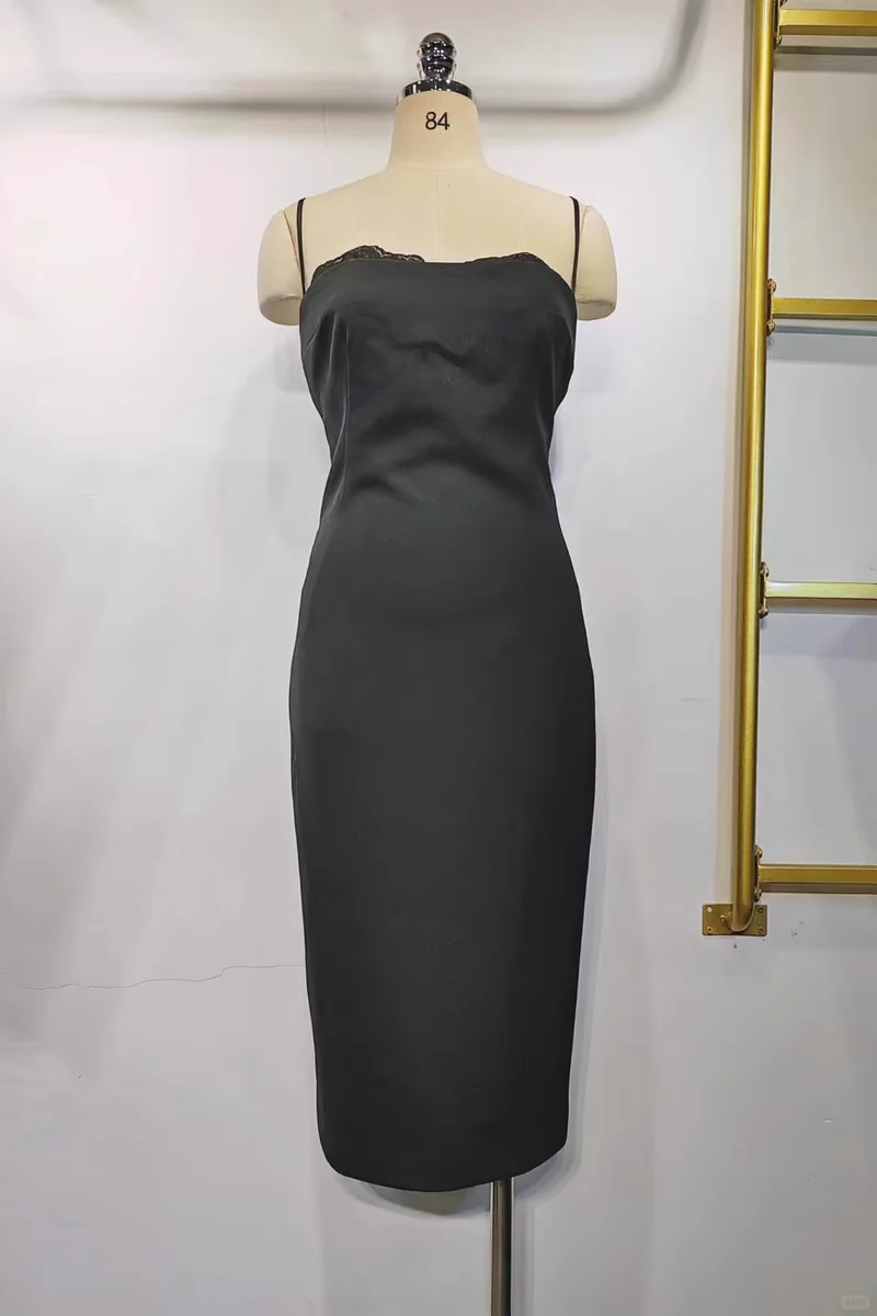 高端抹胸蕾丝拼接吊带修身包臀开叉礼服性感连衣裙