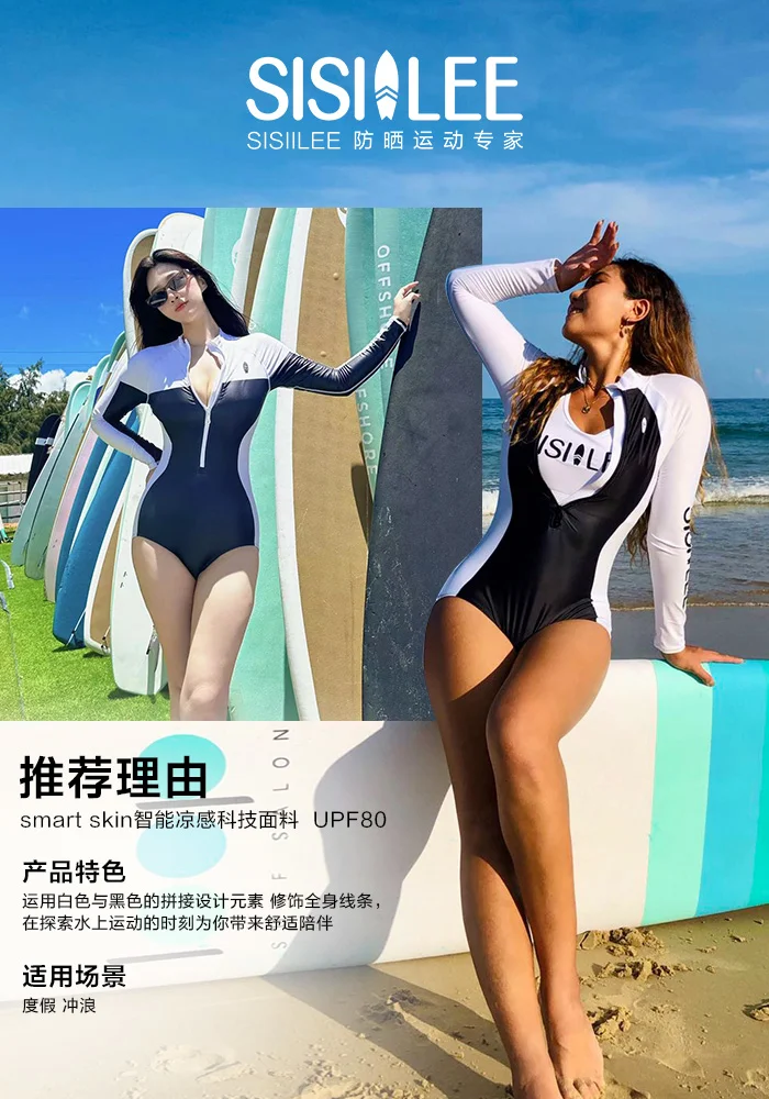 智能防晒的水上运动专家!西西里的Smart Skin面料,UPF80+防护,让你无惧烈日,尽情享受水上乐趣。