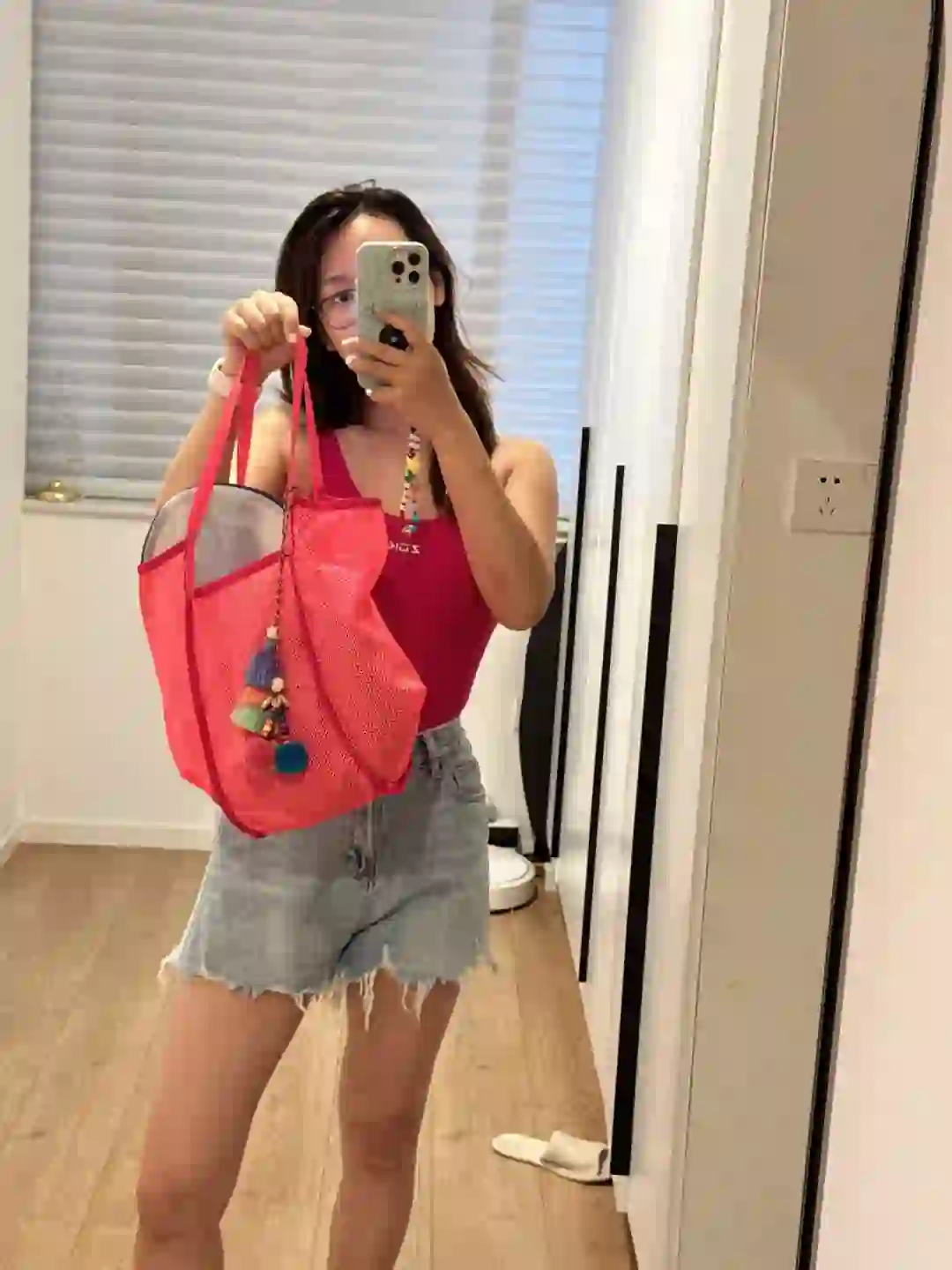 为了省事,直接把泳衣穿着去了