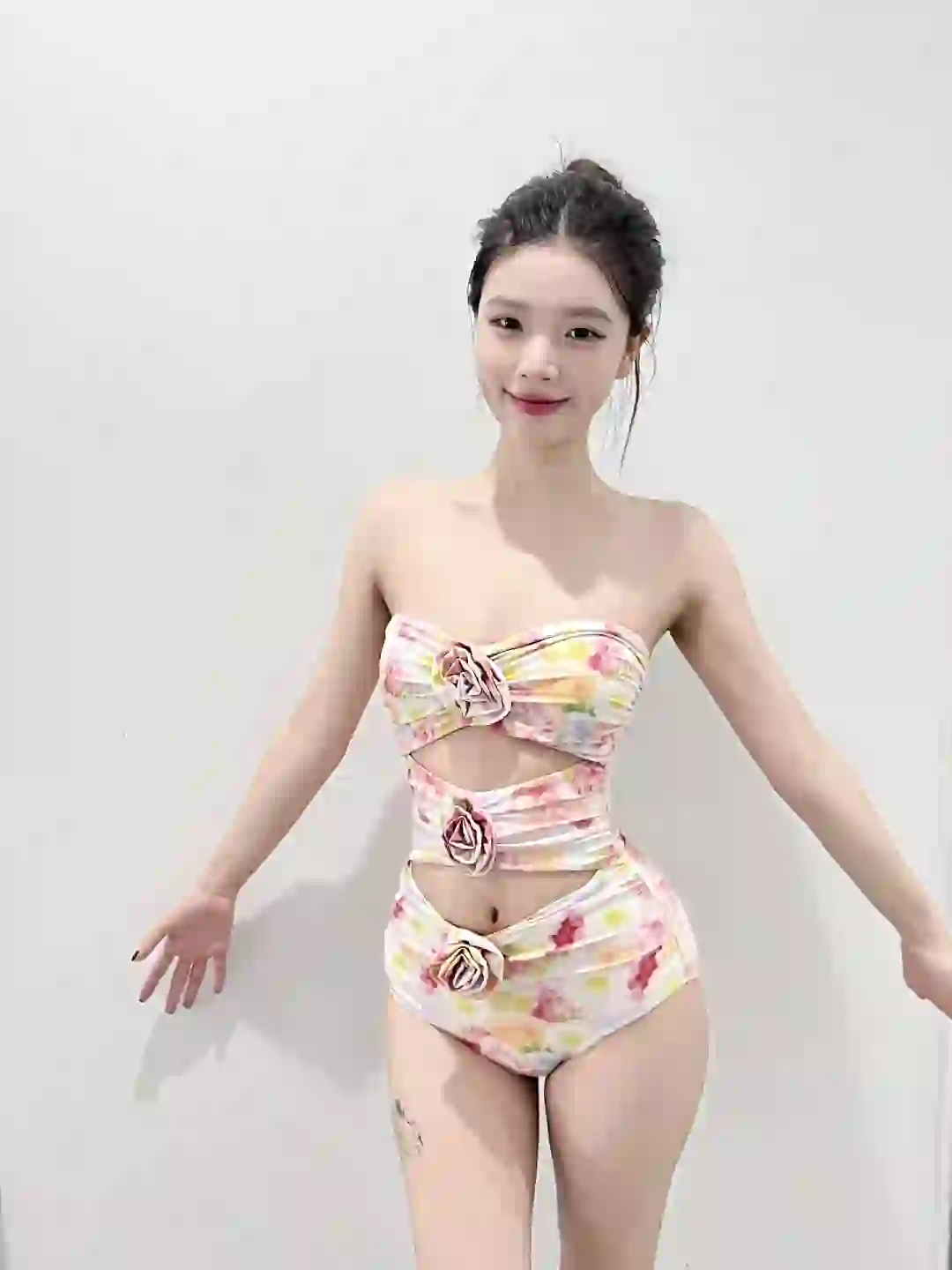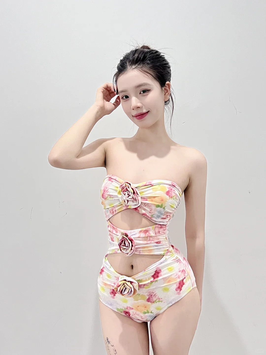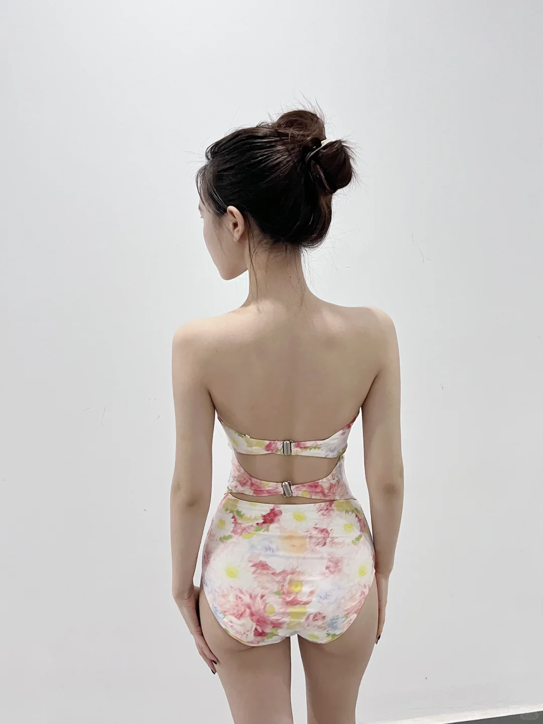 柏梦丝夏季新款时尚印花 显瘦抹胸沙滩度假连体泳衣##