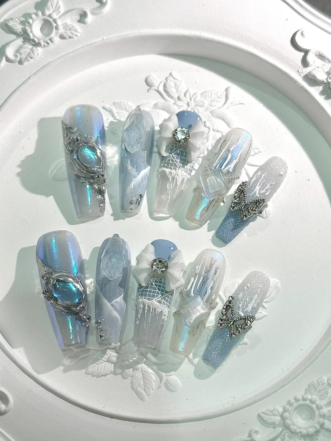 部分图片来自原图水印作者#浪漫生活的记录者 #高级穿戴甲 #氛围感美甲 #百搭美甲 #手工穿戴甲 #穿戴甲创业 #美甲分享 #穿戴甲款式 #蓝色系 #蓝色穿戴甲