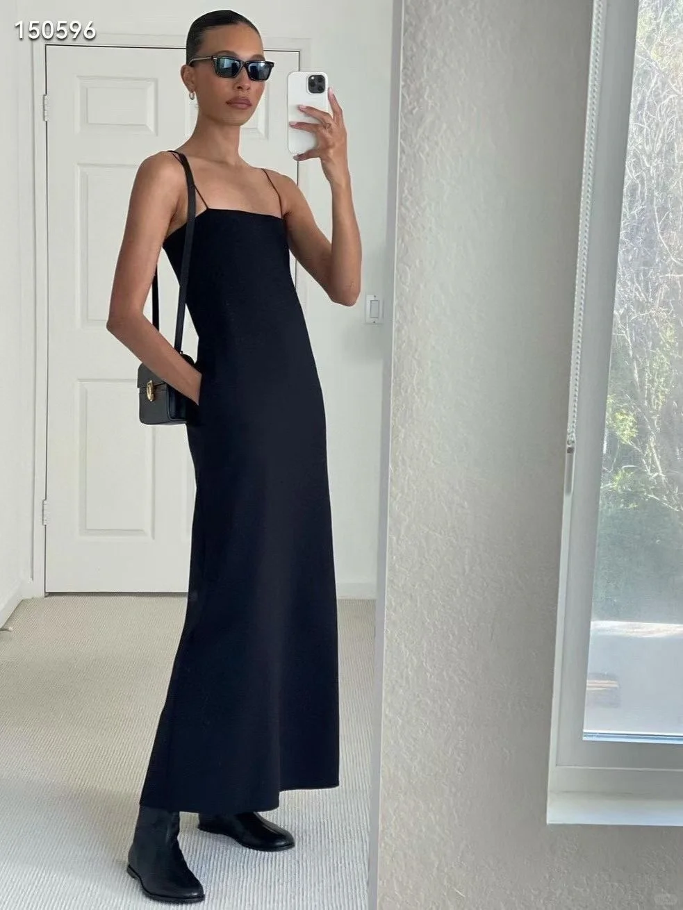 时髦法式女孩穿搭灵感春夏新款吊带长裙