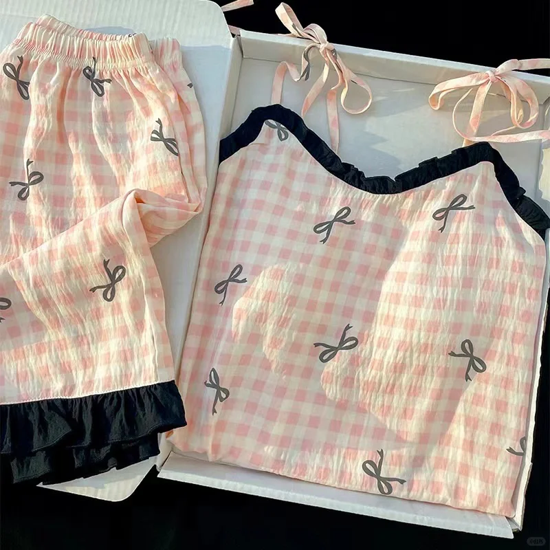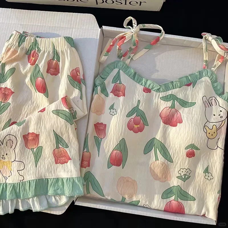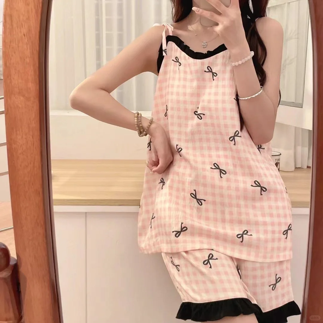 夏季云朵棉性感吊带短裤睡衣两件套装家居服