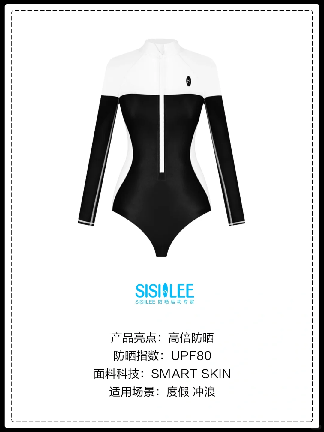 1️⃣ sisiilee西西里:专为水上运动而生的品牌,其smart skin智能科技面料,防晒UPF高达80,让你在享受阳光的同时,轻松抵御紫外线。