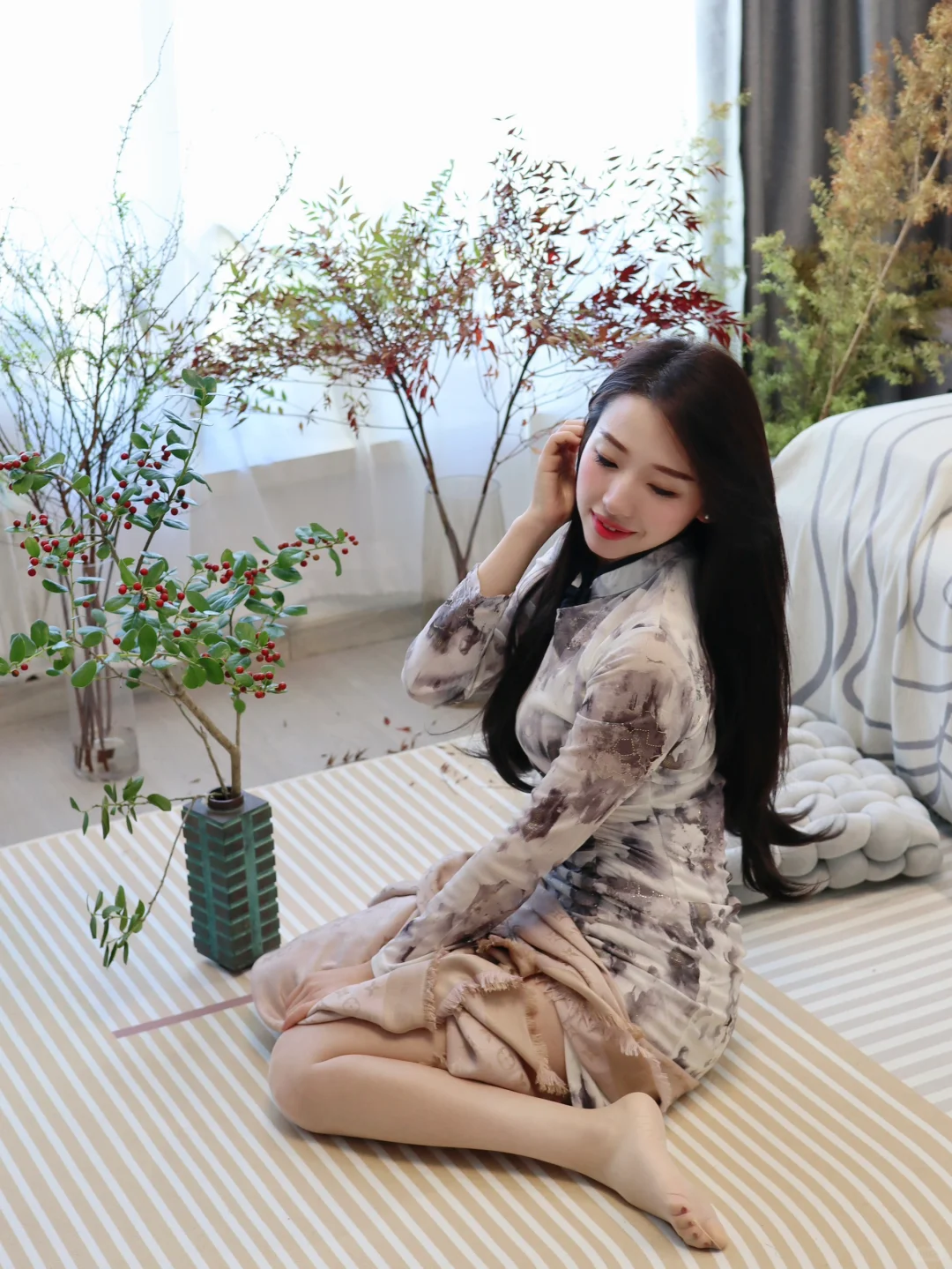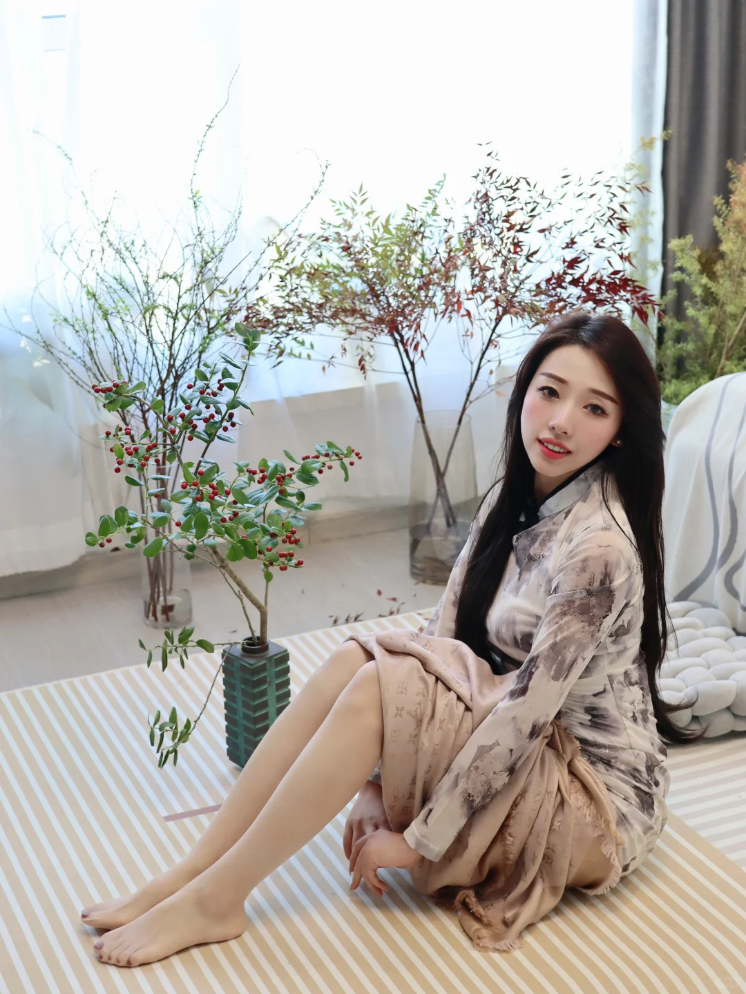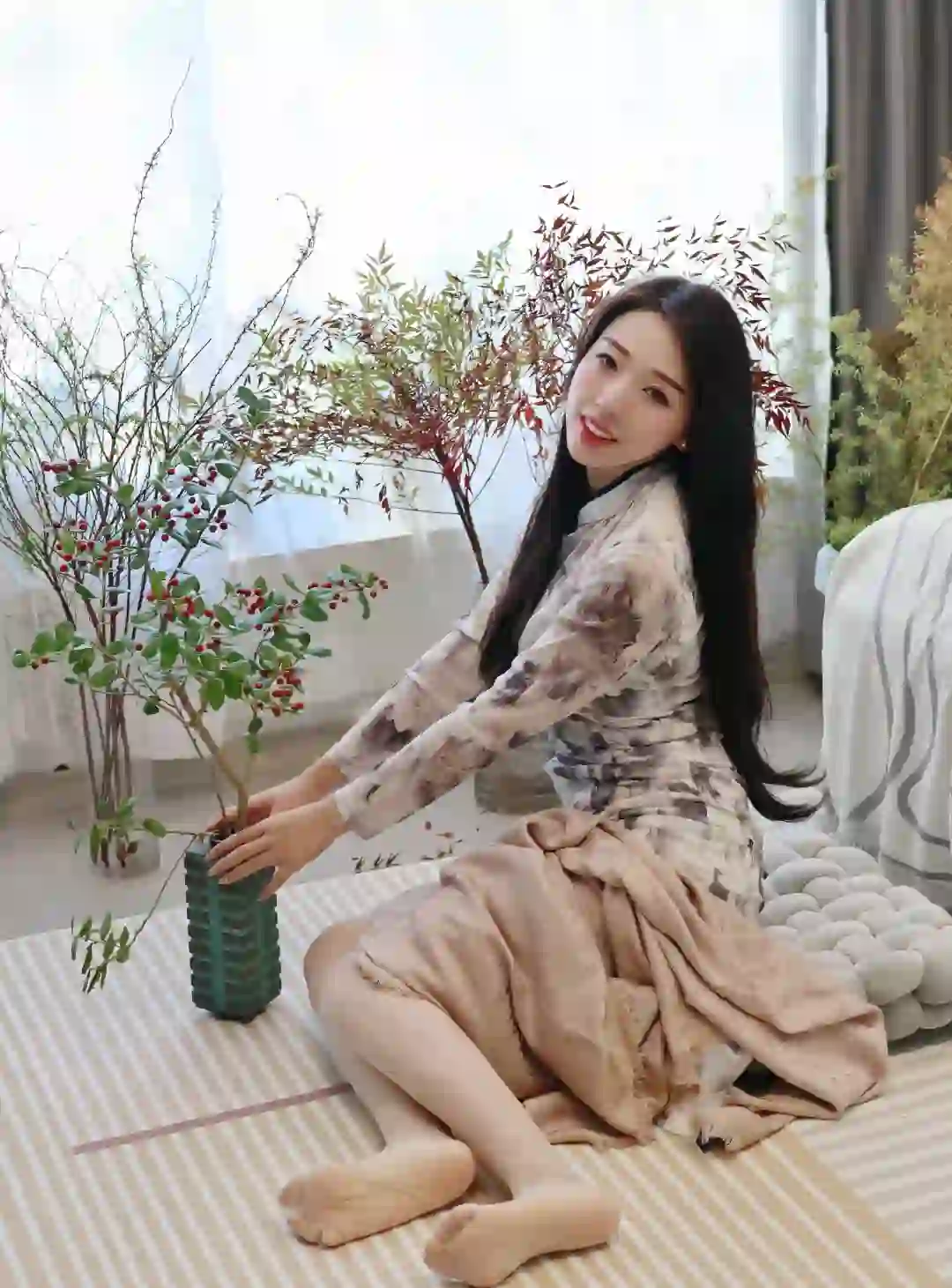 近期爱上旗袍 搭配肉色丝袜 清冷中自带温柔 丝袜手感丝滑 不易勾丝 已回购多双
