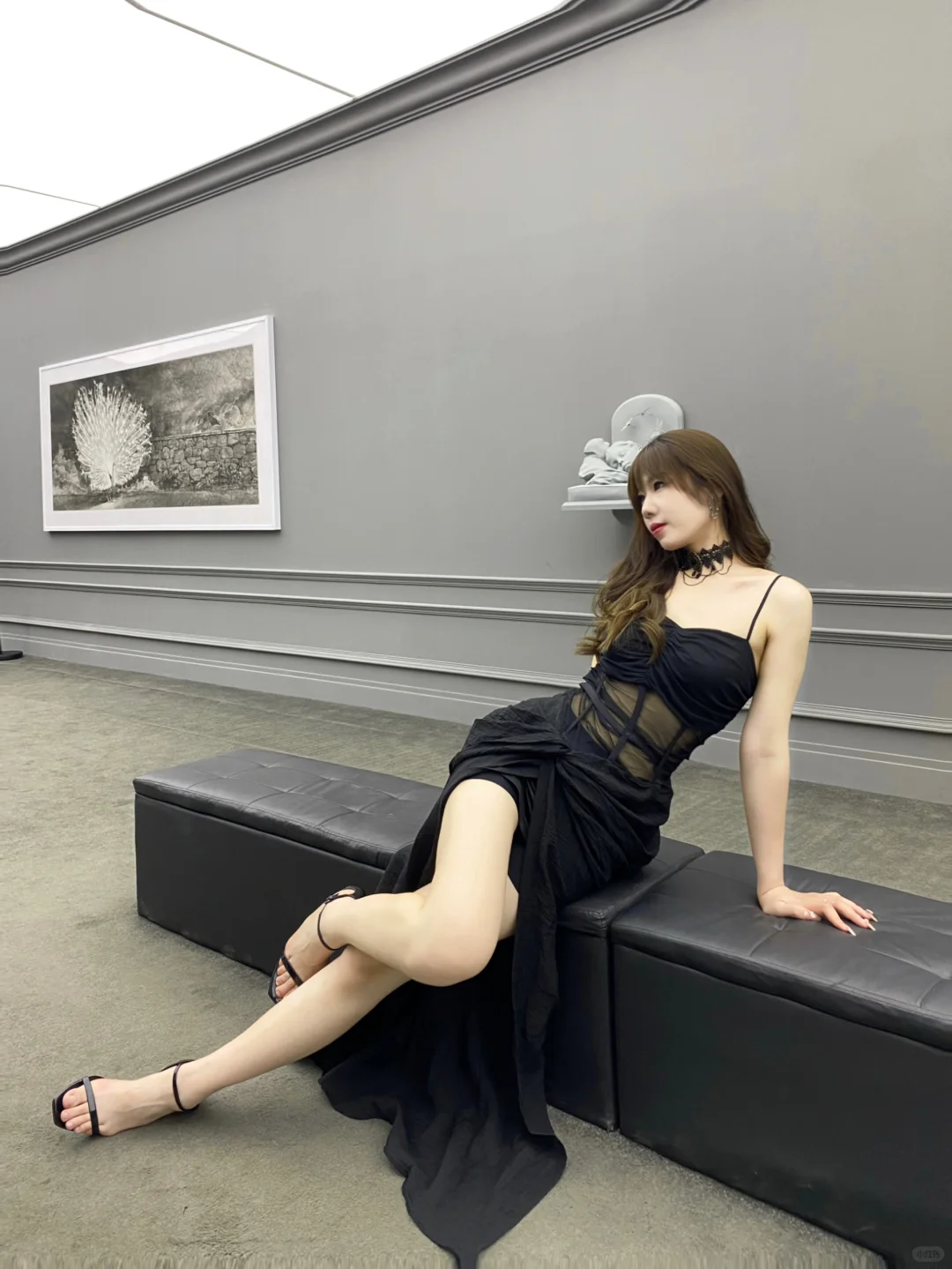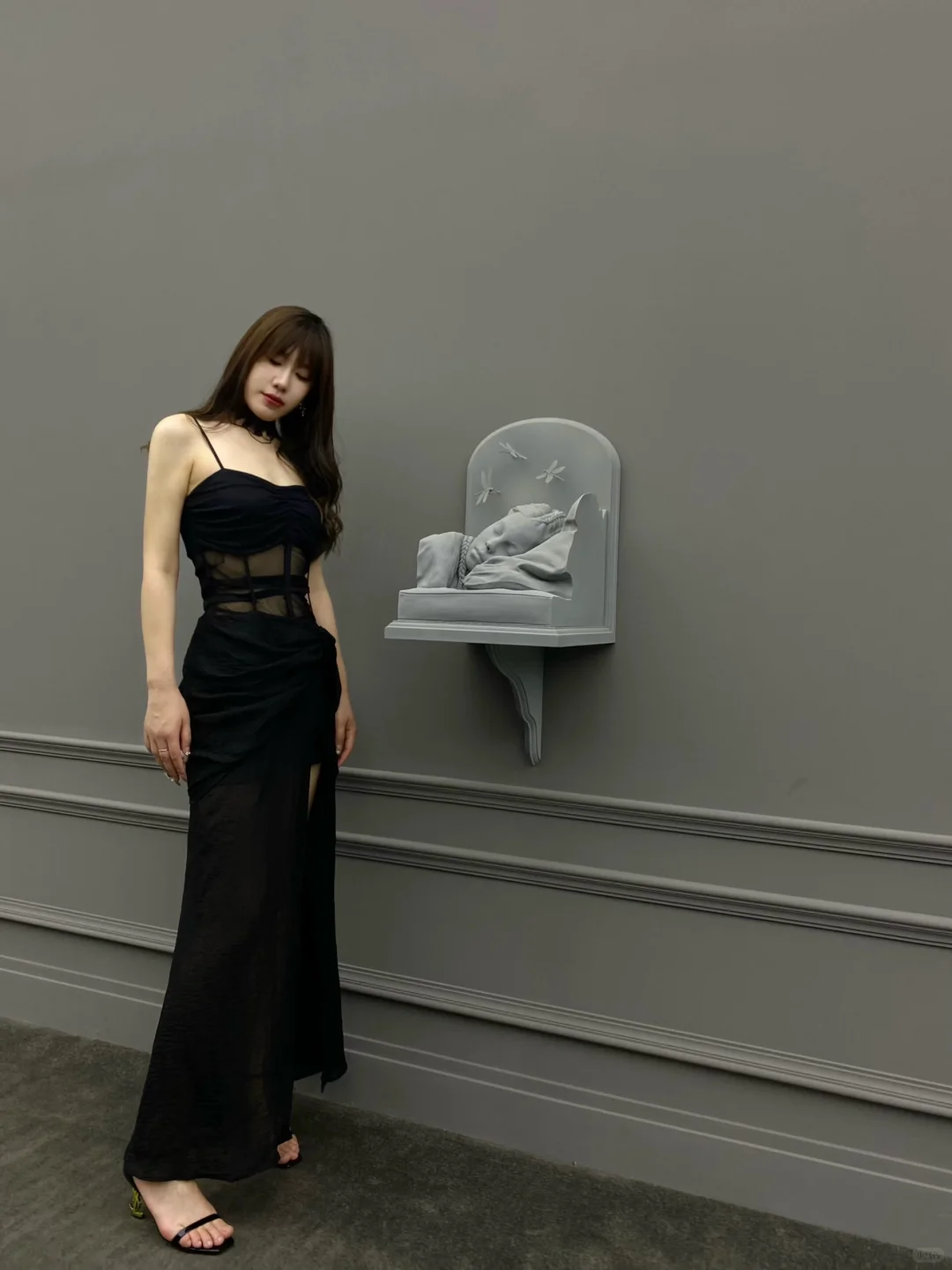 182cm|上身超惊艳的黑纱局部透视长裙❗️
