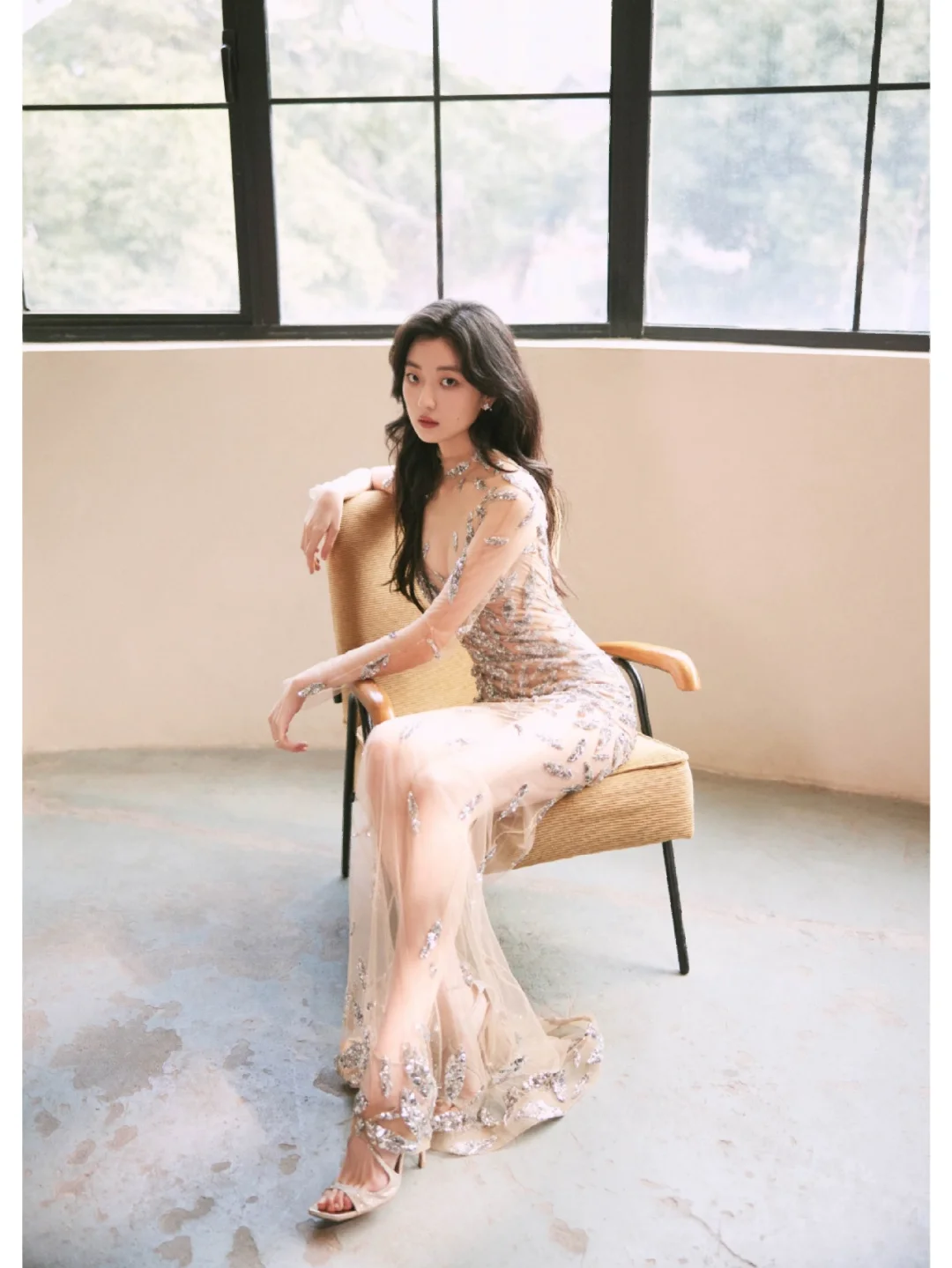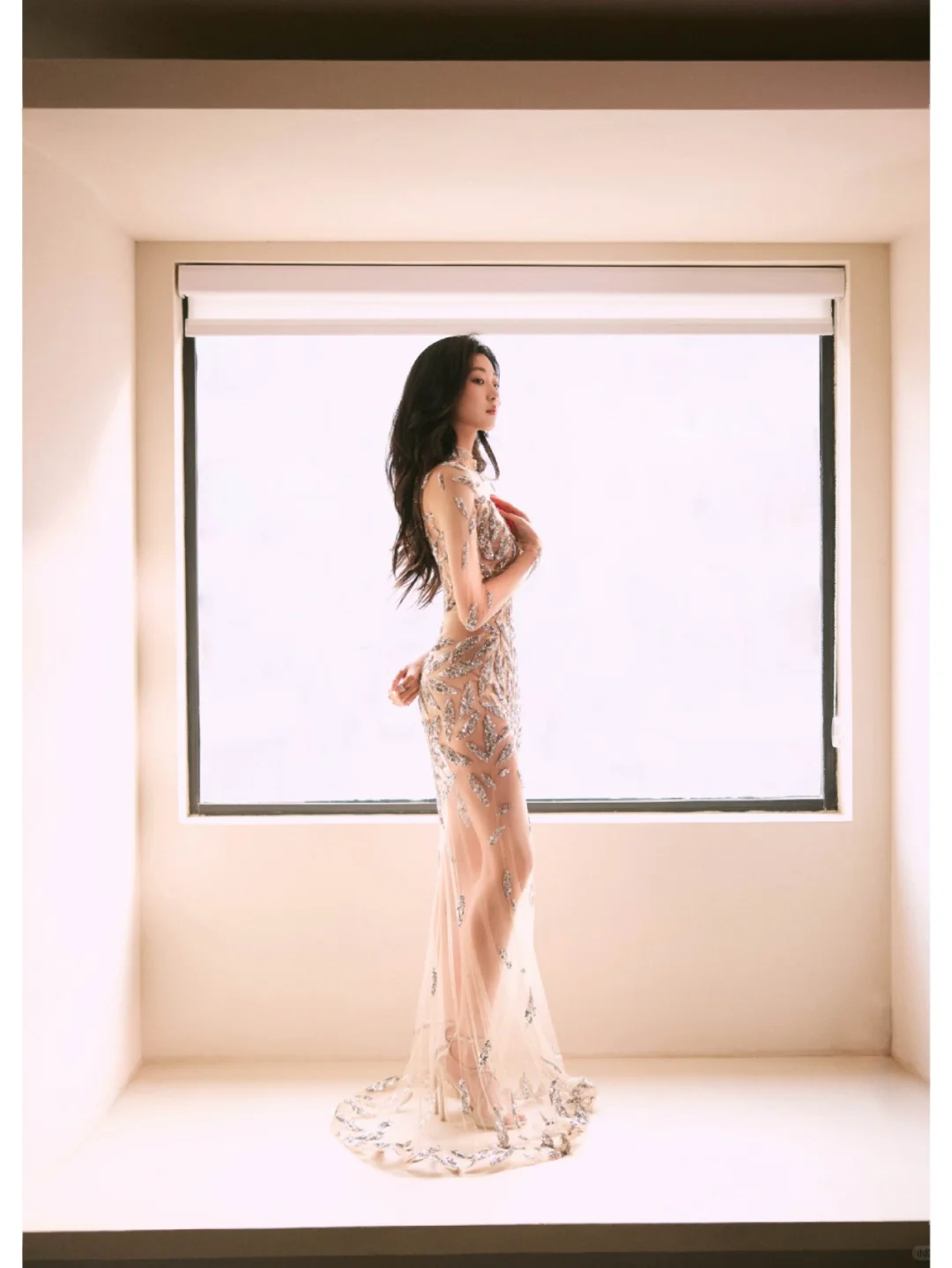 新生代女星孙千, 一袭透视薄纱裙,展现火辣曲线。 却在众圈内女星中,大胆穿上一袭透视薄纱裙, 成功博取观众目光,成为镁光灯焦点。走动时薄纱下,S曲线和大长腿,尽显好身材。
