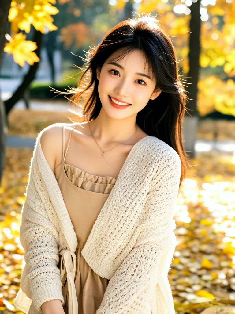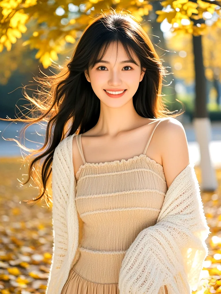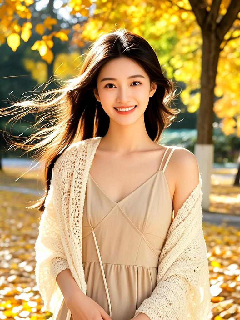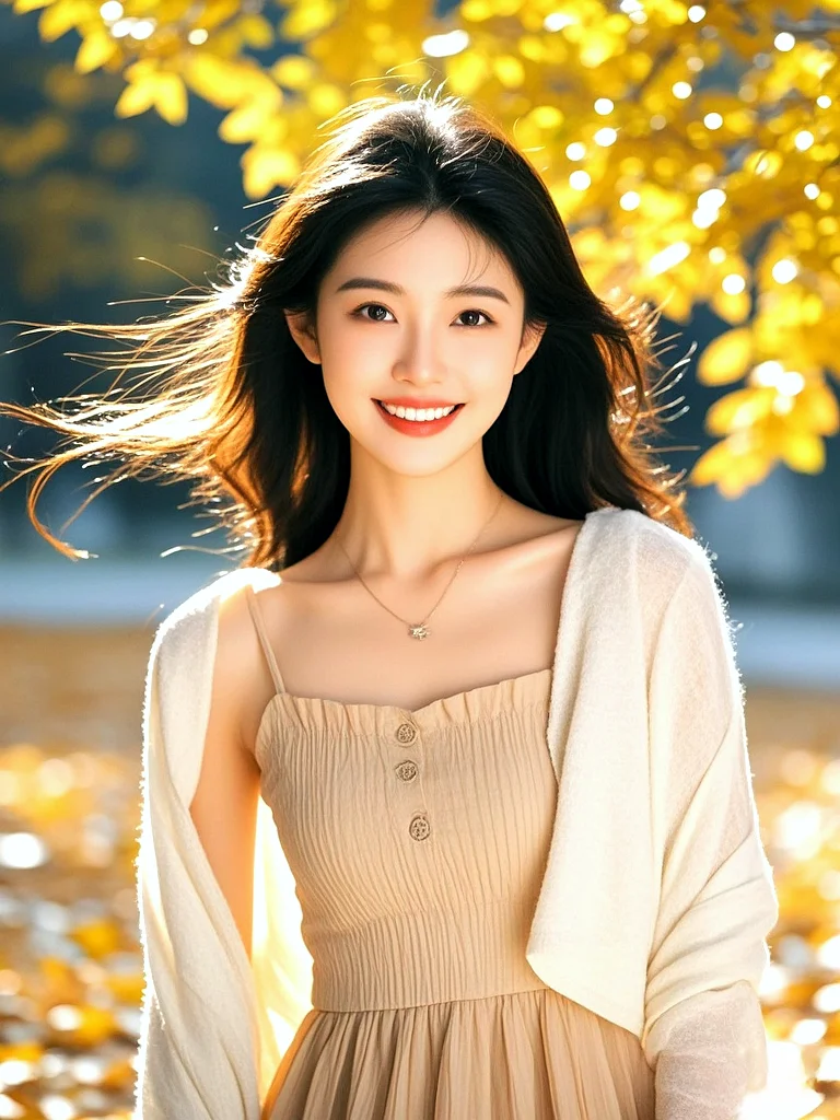 ,金黄的银杏叶在阳光下熠熠生辉,与女士的优雅气质相得益彰。这秋日的银杏,不仅为景色增添了色彩,更仿佛在为这位女士的优雅加冕。#温柔的女孩 #每双都在发光 #送你一张壁纸 #挑战手机摄影一张封神