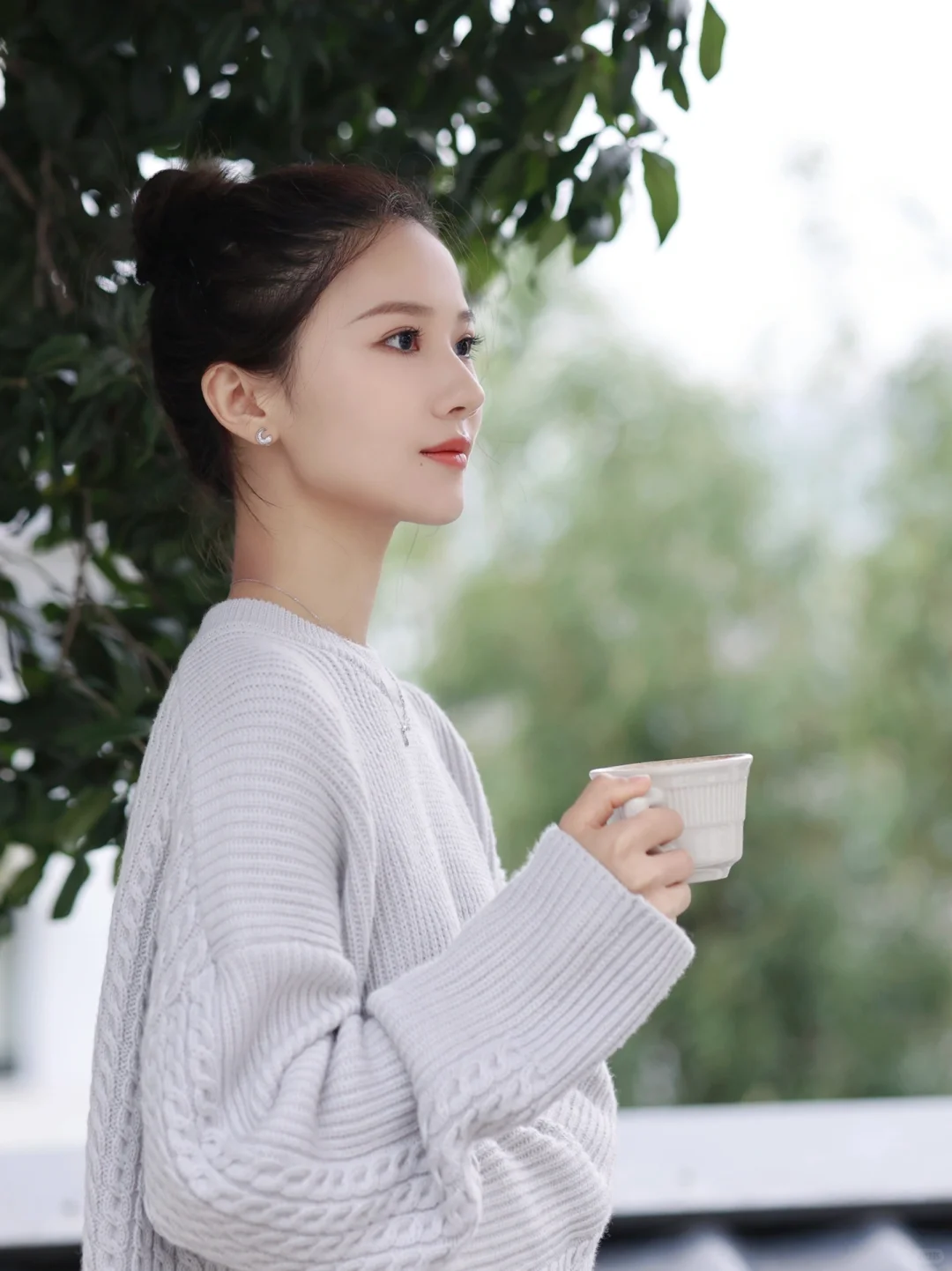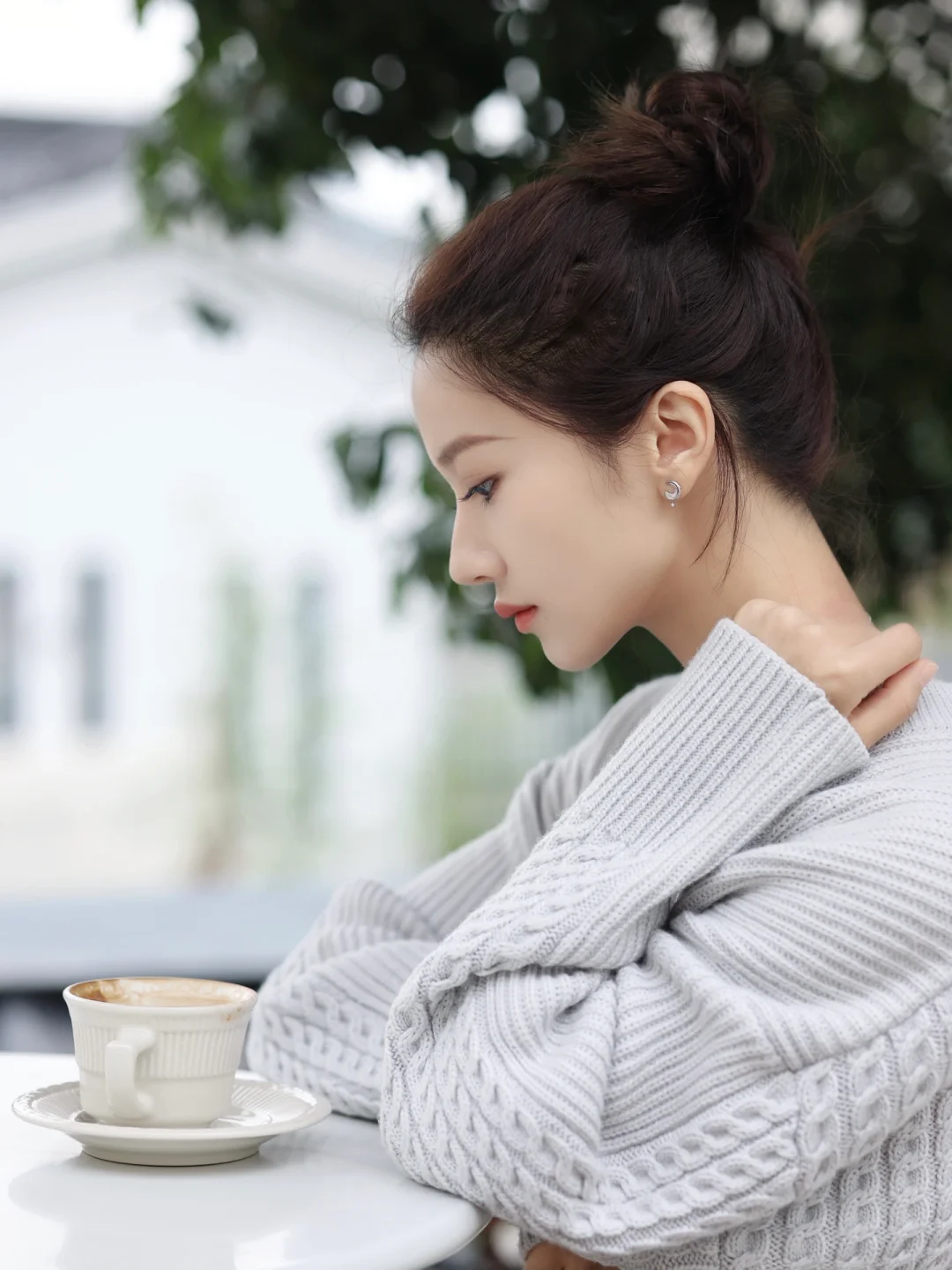 经常穿的都是很日常舒适的基础款 浅色系的衣服配上丸子头 显得知性又温柔☺️