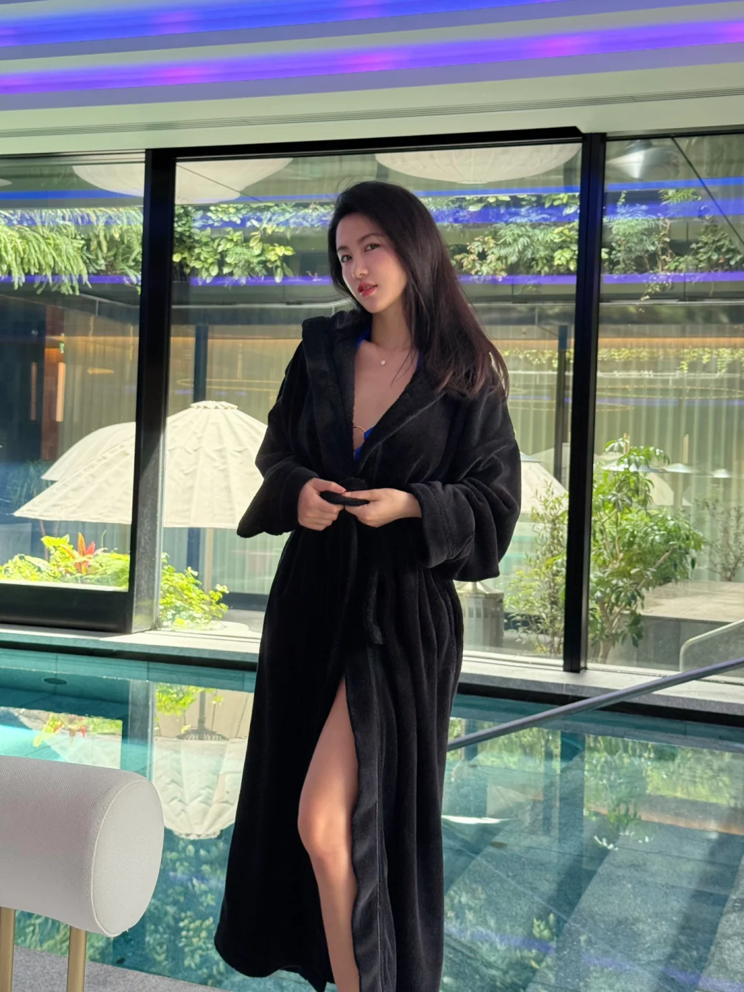 。话说黑色的浴袍上身有种女大佬的气质哇😎,提前祝所有运动中重塑自我的姐妹们,女生节快乐