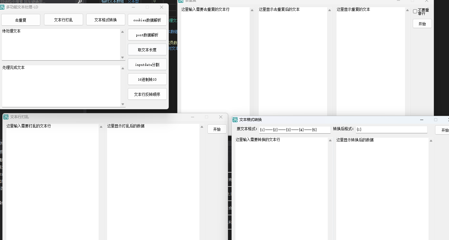 把自己经常用一些文本处理功能写了个小工具方便自己顺便看看有没有人能用的上,代码写的比较乱勿误喷基本上都是调用的精易模块里面的源码。