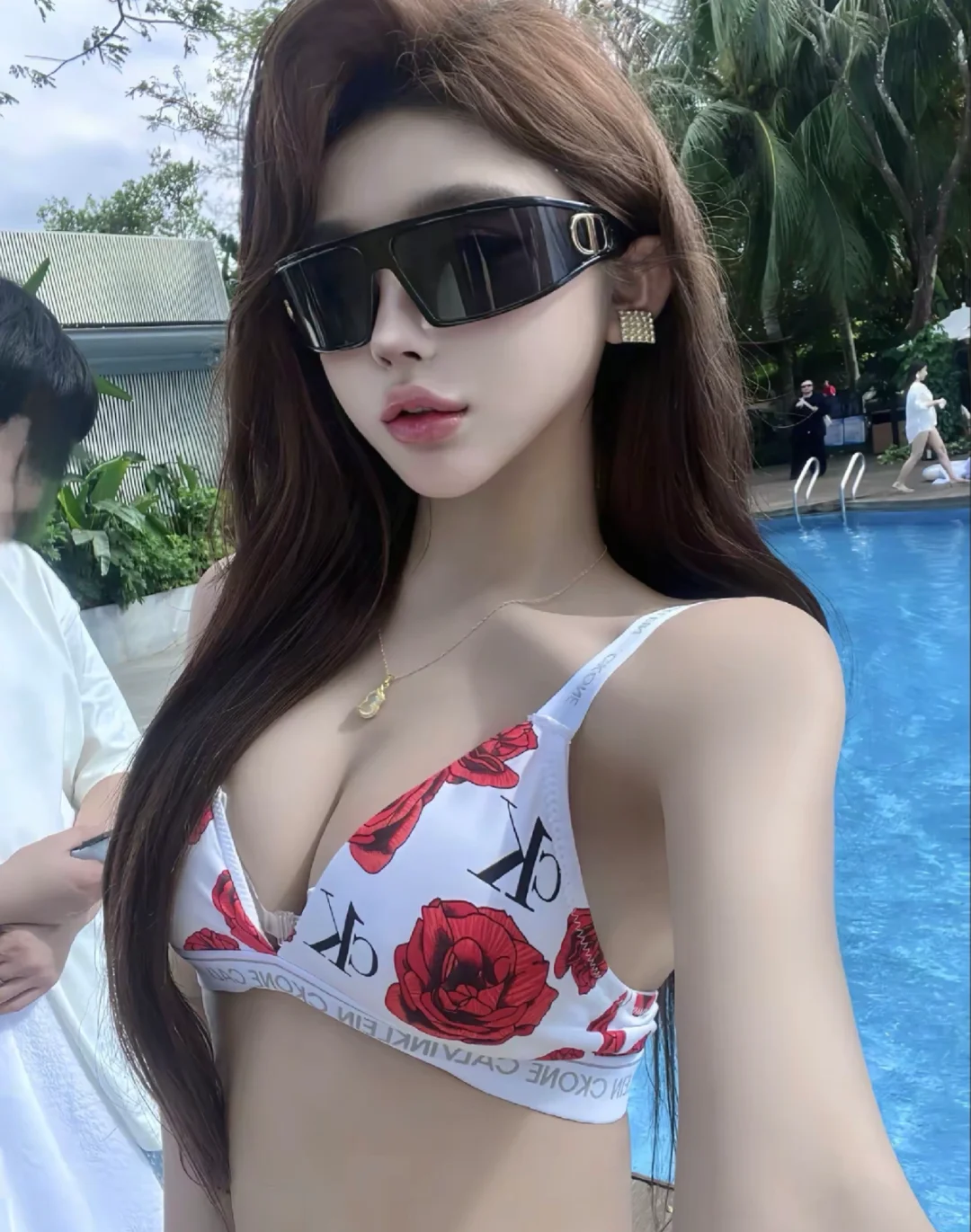 #开始期待在温泉里撒欢了 #正常穿搭可出门 #泳装 #美女 #泳池拍照 #比基尼 #御姐女头 #泳池写真 #小红书RFL时尚轻单 #CK红玫瑰\n别人在空调房里“冻人”,我在泳池里“动人”,主打一个清凉比基尼style !#夏天泳池拍照,你更倾向穿色彩鲜 [投票]#