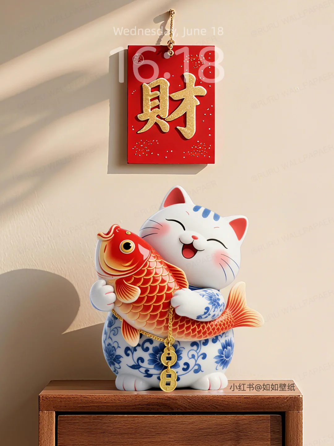 财猫抱鲤 I 手机壁纸040