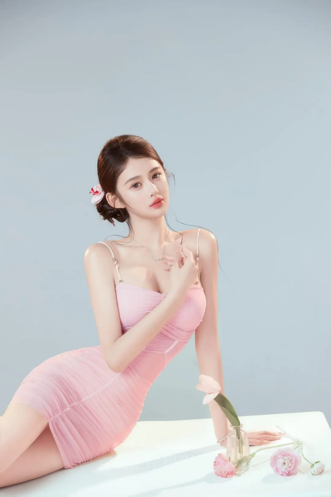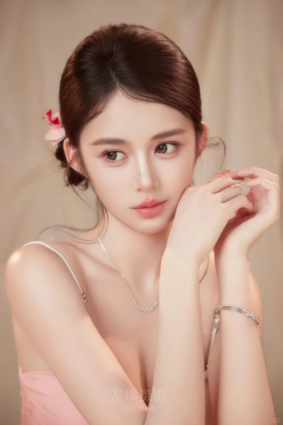 谁懂啊家人们!我又挖到宝藏写真馆啦~\n这次拍的纯欲风写真真的把我美到失语!一整个就是戳中我心巴的大动作~\n拍摄手法我真的要夸爆!摄影师特别会引导,会耐心教我摆动作,而且光影处理超牛,把皮肤质感拍得好好,每一张都像自带柔焦滤镜。构图也很有想法,把我拍得又瘦又美,闺蜜都问我是不是偷偷去健身了哈哈~\n摄影风格是那种又纯又欲的韩系画报风,温柔又不失小性感。服装和场景搭配得恰到好处,粉色小裙裙又甜又辣,花朵布置氛围感直接拉满,每一个小细节都长在我的审美点上!\n已经安利给身边姐妹啦,下次还要来解锁其他风格~\n#纯欲写真 #少女写真 #韩系画报 #氛围感写真 #写真分享\n姐妹们觉得这组照片怎么样?快来评论区和我聊聊~\n \n#左岸摄影 #个人写真 #拍照姿势 #唯美写真 #艺术写真 #气质写真 #高级感写真 #写真风格 #女子写真 #美女写真