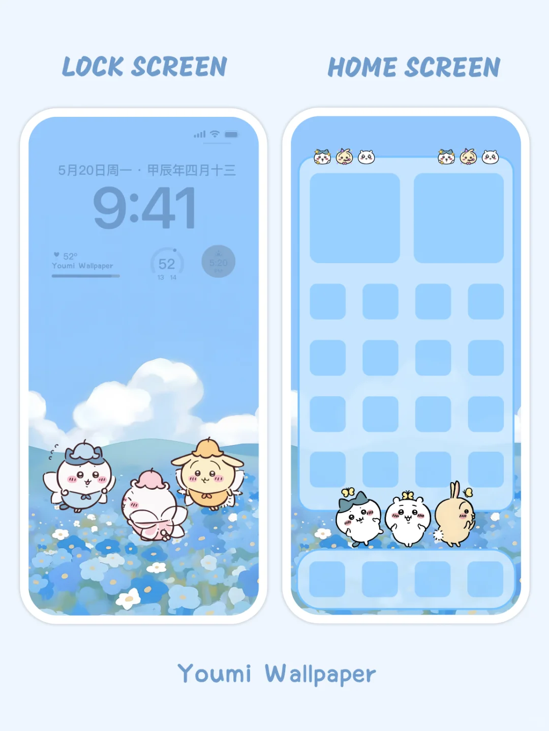 chiikawa•蓝色花海梦幻联动丨治愈手机壁纸