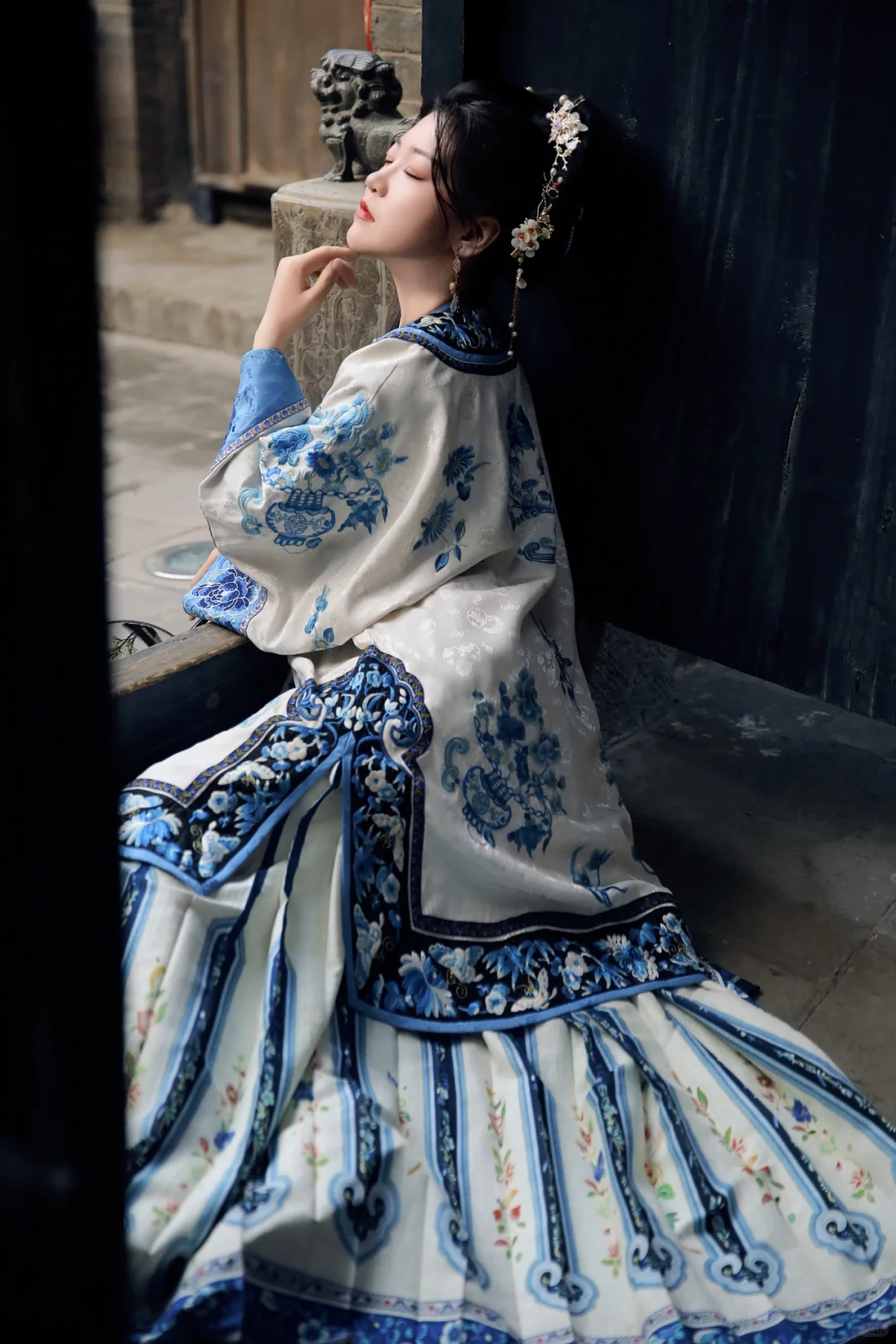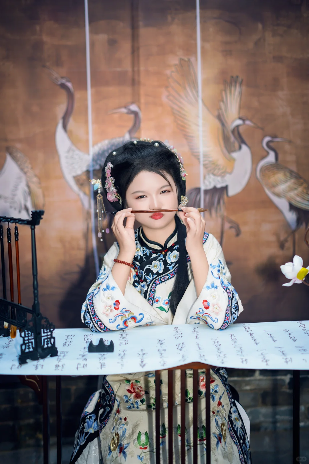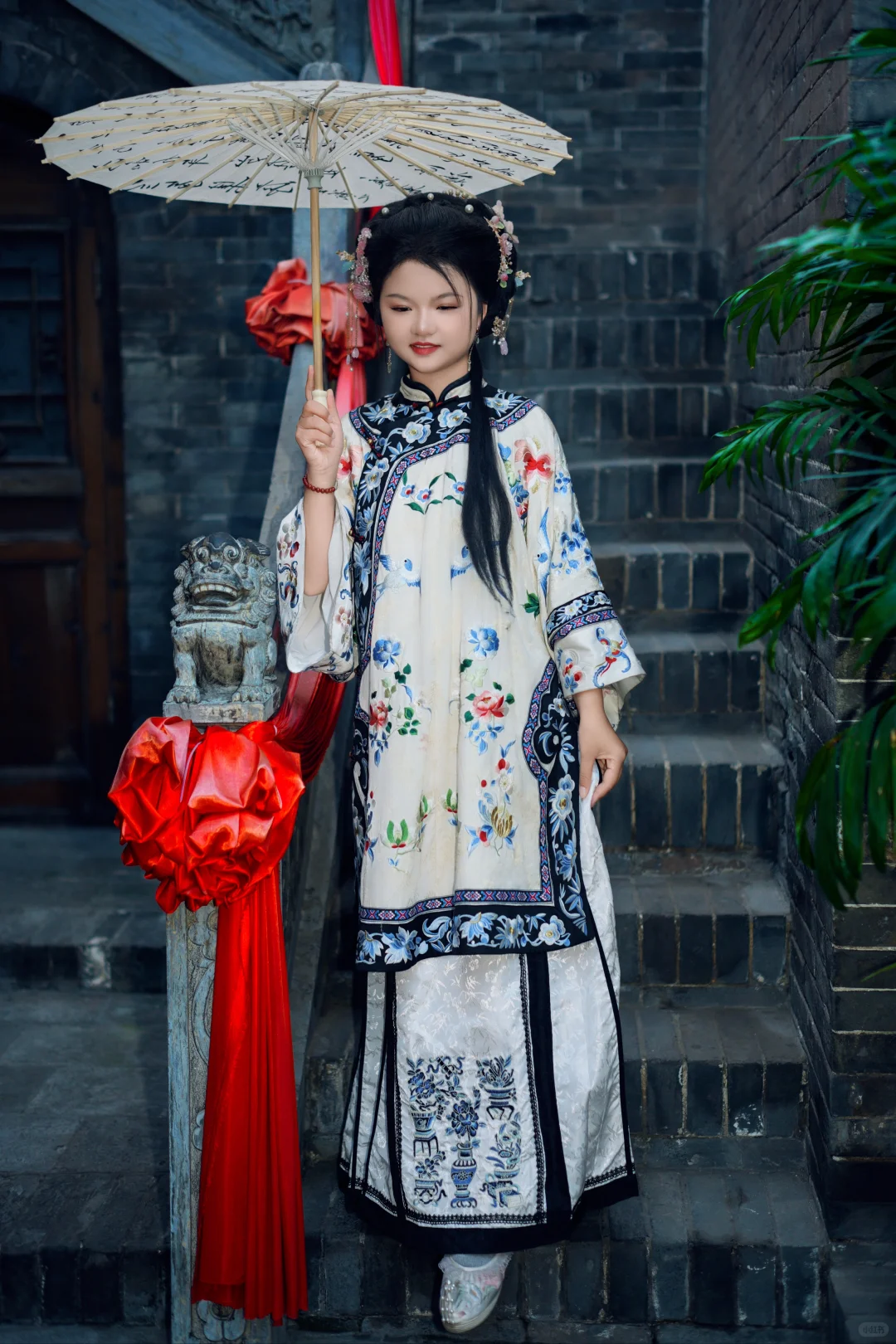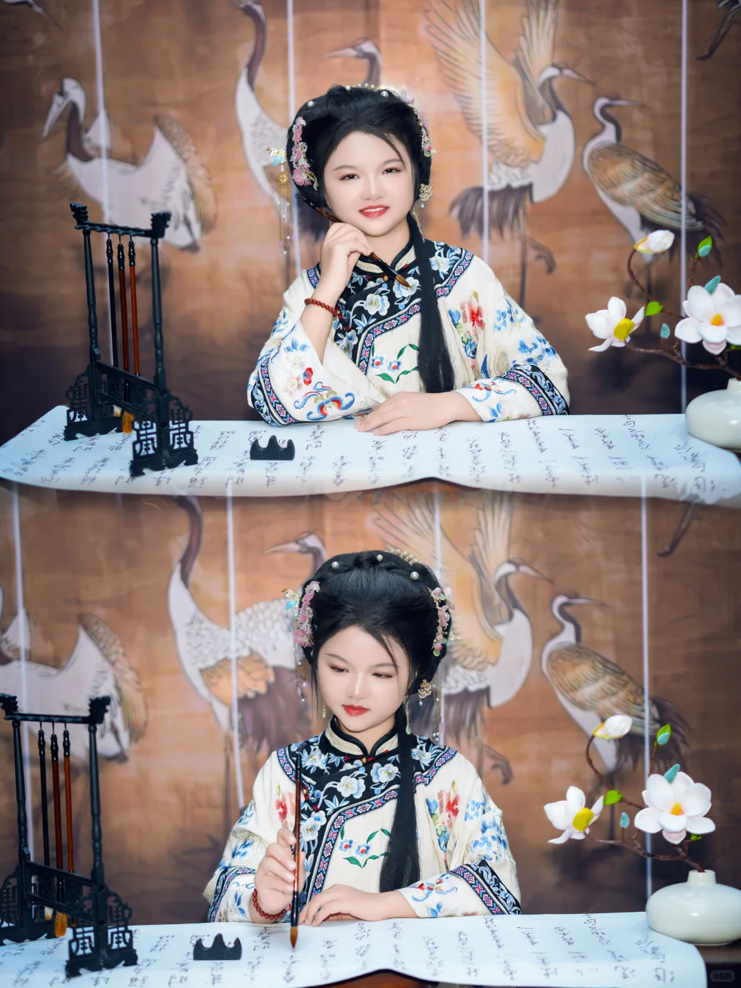 🌈Tips\n💙时间:中秋假期\n💙地点:平遥古城\n💙写真:晋商大小姐\n🌈Memory\n💕平遥古城里晋商少奶奶、晋商大小姐写真店层出不穷,以自己浅显的理解,这两种造型最大的区别就是前额是否留一撮整齐的前脸儿\n💕从小时候看的《哑巴新娘》,到后来孙俪演的《那年花开月正圆》一直不理解为什么前脸儿那么规矩那么齐平,后来查资料说晋商少奶奶作为家族中重要角色,着装打扮必须遵守严格的规范要求,整齐的刘海儿非常符合当时的审美潮流,彰显女性的端庄、秀丽、温婉\n \n💕Anyway还是更喜欢大小姐妆造,于是在短视频平台上搜索一番,最后锁定武德第旅拍馆。和大多数写真店一样,进店流水线服务:妆造——服饰——拍摄——选片,妆造时候一般会绑很多假发,如果不想太厚重可以提前沟通\n \n💕我选的是蓝白色衣服,头上带蓝花,给我化妆的小姐姐上来就给戴个大红花,跟她沟通被告知没有蓝花,最后索性不管了,说自己喜欢什么就自己去找吧(最后选片的时候,隔壁电脑里的照片戴的就是蓝花)\n \n💕除了妆造不愉快其他还可以,拍摄场地在隔一条街的后院,拍摄过程中跟摄影师吐槽了化妆师,可能出于情绪安抚,摄影师更用心地拍了几张更有个性的照片。最后就是选片,现在看磨皮有点夸张,不过总体上还是比较新鲜的体验,试试不同妆造,记录下不一样的自己#晋商写真 #平遥古城#晋商大小姐造型 #晋商少奶奶写真 #晋商大小姐写真 #古风妆造 #闺蜜照 #闺蜜装