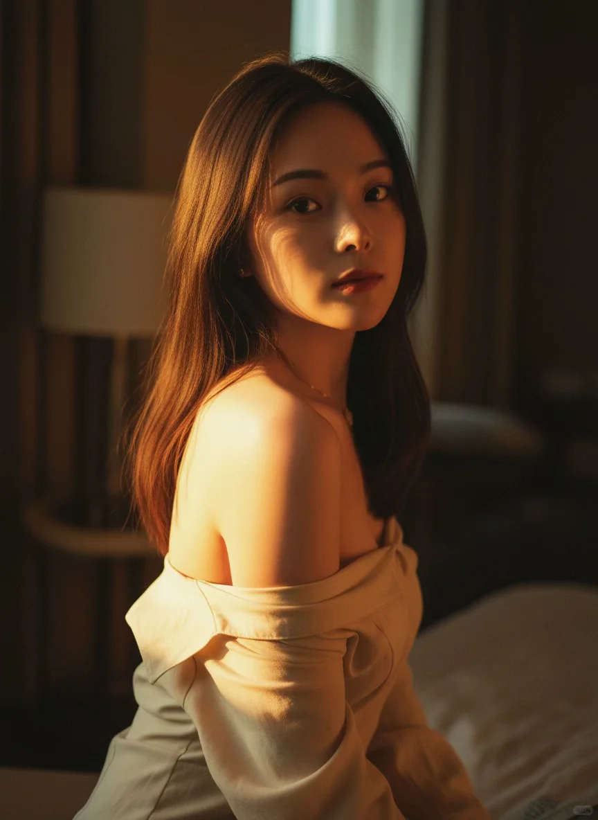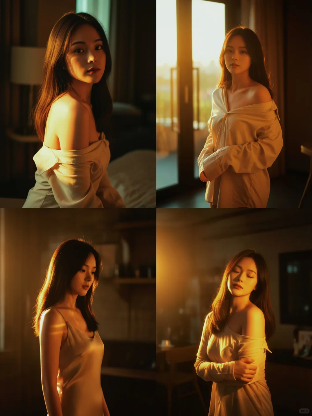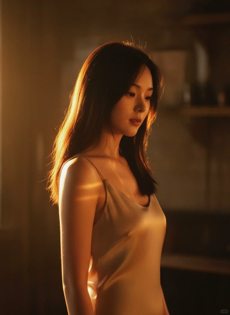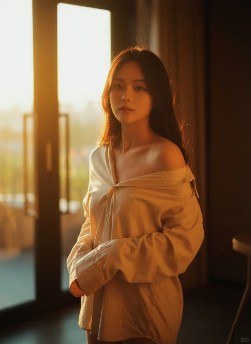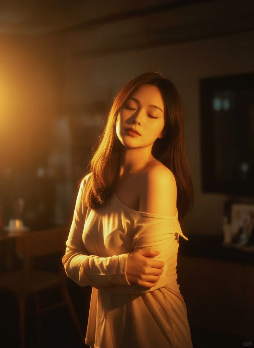 室内也能拍出黄金时刻的氛围感大片!\n不需要专业摄影棚,也不用黄金时刻守着夕阳,你只要一张普通照片+AI提示词,就能秒变电影级写真。\n今天调试出来AI摄影是室内环境黄金时刻的氛围感写真,效果绝美。\n📌操作方法:\n👉 第1步:Nano 香蕉模型,可参考我之前的笔记。\n👉 第2步:上传一张清晰的半身照(最好是衣着简洁,背景干净)。\n👉 第3步:复制这段提示词👇\n“参考我上传的照片,输出一张高分辨率彩色艺术人像摄影,与照片不同的姿势,真实摄影。这是一张年轻女性的写实风格半身肖像,她微微闭眼,头向一侧倾斜,双臂交叉抱胸,穿着一件轻薄的米色衣衫,衣衫半褪露出香肩,设置在一个光线昏暗、背景模糊的室内空间。\n场景被一道来自左上方的、如同“黄金时刻”阳光般强烈而温暖的侧逆光(轮廓光)照亮。光线呈现出浓郁的金色和橙色调,在她的轮廓(头发、脸颊和肩膀)上勾勒出明亮的边缘,并穿透了轻薄的衣物,在高光区域形成了柔和的光晕。\n这营造出一种极其温暖、复古且宁静的氛围,具有强烈的电影感和模拟胶片风格。使用大光圈镜头拍摄,突出了皮肤的细腻质感、光线穿透衣物的褶皱,以及模仿胶片的精细颗粒感。图像应为竖幅构图。”\n🎞效果呈现:\n画面里,她的侧脸被一束金色逆光勾勒出来,发丝、肩膀、衣物边缘都闪着暖光。衣衫的褶皱因为透光而显得通透,整个氛围复古而宁静,仿佛停格在电影里的某一帧。\n💡小技巧:\n- 想更“复古”,提示词里加“胶片颗粒、褪色、模拟胶片”。\n- 想突出“宁静感”,加“柔和、温暖、静谧”。\n- 建议竖幅生成,氛围更适合用来做头像、封面。\n- 可以替换提示词中衣服穿搭与人物造型,注意提示词修改。\n- 修改后转成英文效果更佳。\n🔥我觉得这类“室内黄金时刻”风格特别适合用来做社交头像,带点情绪感,又不会太夸张。看起来既自然,又带点文艺气质。提示皆为原创,如果喜欢,可以❤️⭐️哦!\n \n#AI艺术照 #AI工具推荐 #NanoBanana #AI写真 #AIGC #ai提示词 #AI自画像 #ai新手教程 #室内写真