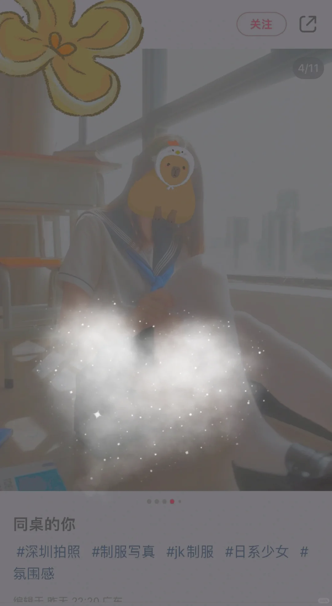 反正我同桌不会谄媚着露大腿根和底裤给我看,也不会躺地上作被qj状还一脸享受一样给我看。\n至于xhs自动生成的标题,拍成这样有多少人喜欢,我想和原帖一样,原po主也知道喜欢这样式的都是什么人。都是一群bz和pcf喜欢看 拍成这样了还不收敛点,真觉得很光彩吗,说句恶毒点的话,真希望被强奸的被侵犯的都是像这样自己愿意擦边和喜欢看擦边的sb,无论男女。而不是那些无辜的男孩女孩,男性女性。 原来xhs平台也知道易引起不当联想呀,那为什么还屡教不改,人家原图都能发出来呢\n \n(衣服本身没错,错在无论穿什么都想着擦擦擦,和想看擦擦擦的人)#jk写真