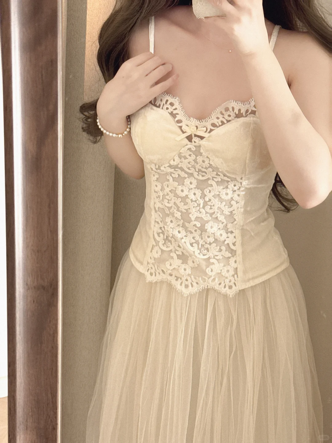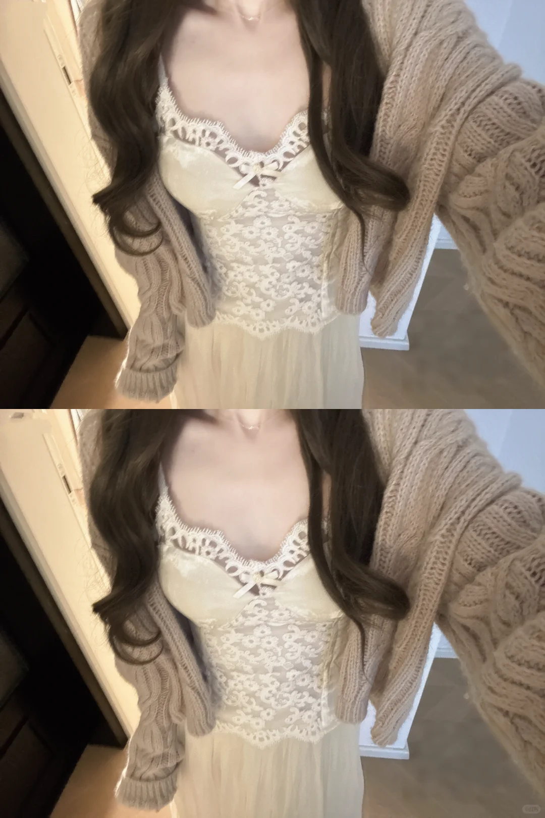 可以搭配所有的毛衣外套\n胸衣自带胸垫 丝绒拼接蕾丝~超温柔而且舒适\n
